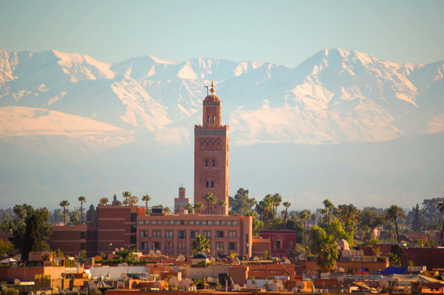 Ezzel ellentétben Marrakech a helyi lakosság hatvan százalékát kitevő berberek települése, amely a „Dél Gyöngye” utónevet kapta. A város központja, a Djemaa el-Fna tér egykor a szultán „narancsai”-ról volt nevezetes, melyek a kivégzett és lefejezett bűnözők dárdára tűzött, s elrettentésül a tér sarkain kiállított fejeit jelentették. A tér ma már ennél sokkal barátságosabb helynek számít a maga felfoghatatlanul színes, zajos forgatagával. Bevesszük magunkat a szukok útvesztőibe. Percek alatt elveszítjük tájékozódó képességünket, és egy igazi keleti hangulatot árasztó, ősi városban találjuk magunkat, ahol mintha megállt volna az idő: mintha még mindig a középkorban lennénk. A téren éjszaka zajlik az igazi élet, amikor előkerülnek a kifőzdék, elkezdik műsoraikat a kígyóbűvölők, mesemondók, zenészek, jósok és erőművészek. Mindent betölt a fűszeres ételek nehéz illata és a vad zenekavalkád. De hiába a kifőzdék csalogató illata, szigorú szabály, hogy a hegymászás előtt nem eszünk helyi ételt. Az ember feje csakhamar zsong az élmények tömegétől. Egy kis nyugalomra vágyunk, ezért elsétálunk a város egyéb nevezetességeihez. Marrakech jelképe a Koutoubia mecset, neve könyvkereskedőt jelent, a középkorban ugyanis több száz könyvárus várta az olvasni vágyókat a mecset körül. A könyvárus ma már kevesebb, de a libasorban „drosztoló” hintó annál több. A városhoz közeli Cascades d’Ouzoud igazi hétvégi kirándulóközpont, ami nem csoda, ha belegondolunk, hogy mekkora kincs a félsivatagos tájban a 90 méter magasról aláhulló vízesés, amely méltán kiérdemli az Észak-Afrika legnagyobb vízesése címet. A városi nyüzsgés után jólesik a nyugalom.