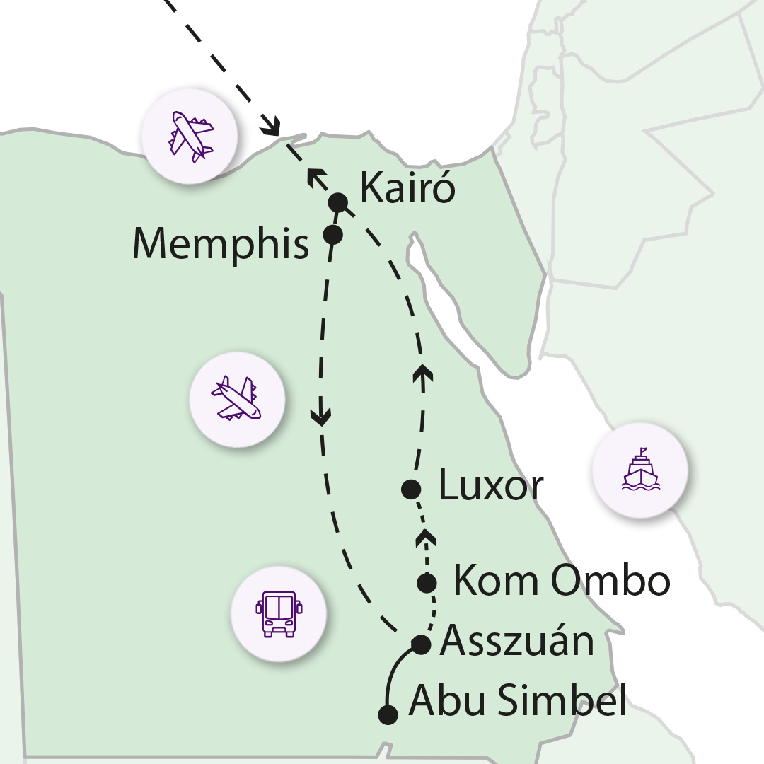 ">gízai piramisokhoz látogatunk el: Kheopsz, Khephrén és Mükerinosz fáraók piramisai az Óbirodalom idején épültek, mintegy 5.000 évvel ezelőtt. A Kheopsz-piramis – amely a legnagyobb és legrégibb –, az ókori világ hét csodájának egyetlen megmaradt műalkotása. Természetesen megcsodáljuk a piramisok őrzőjét, a Szfinxet is. Ellátogatunk a Memphis-Szakkara régióba is, ahol az ókori főváros, Memphis legősibb temetője található. A régió leghíresebb síremléke Dzsószer fáraó lépcsős piramisa. Útközben vásárlási lehetőség is lesz egy parfüm üzletben. Kairóba visszatérve a szálláson vacsorázunk.