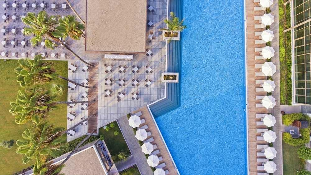 Törölközők, napernyők, napozóágyak a medencénél és a strandon ingyenesen biztosítottak.