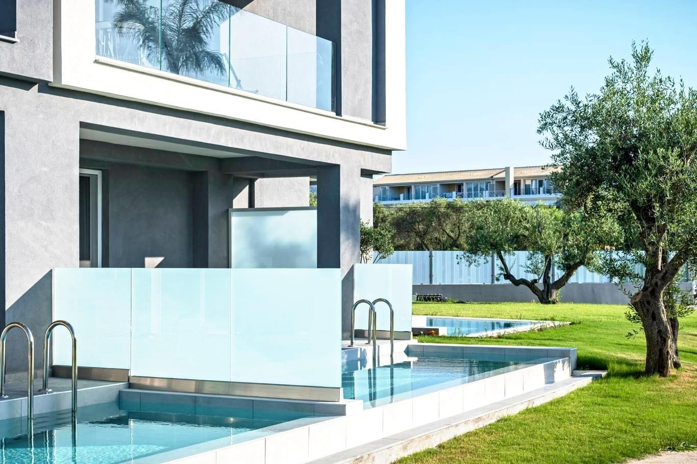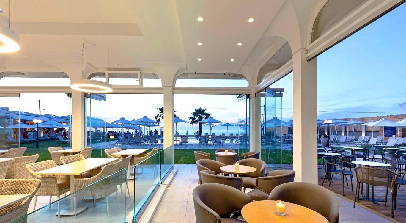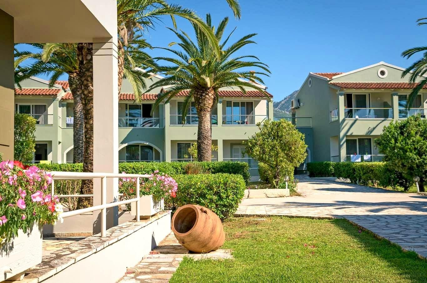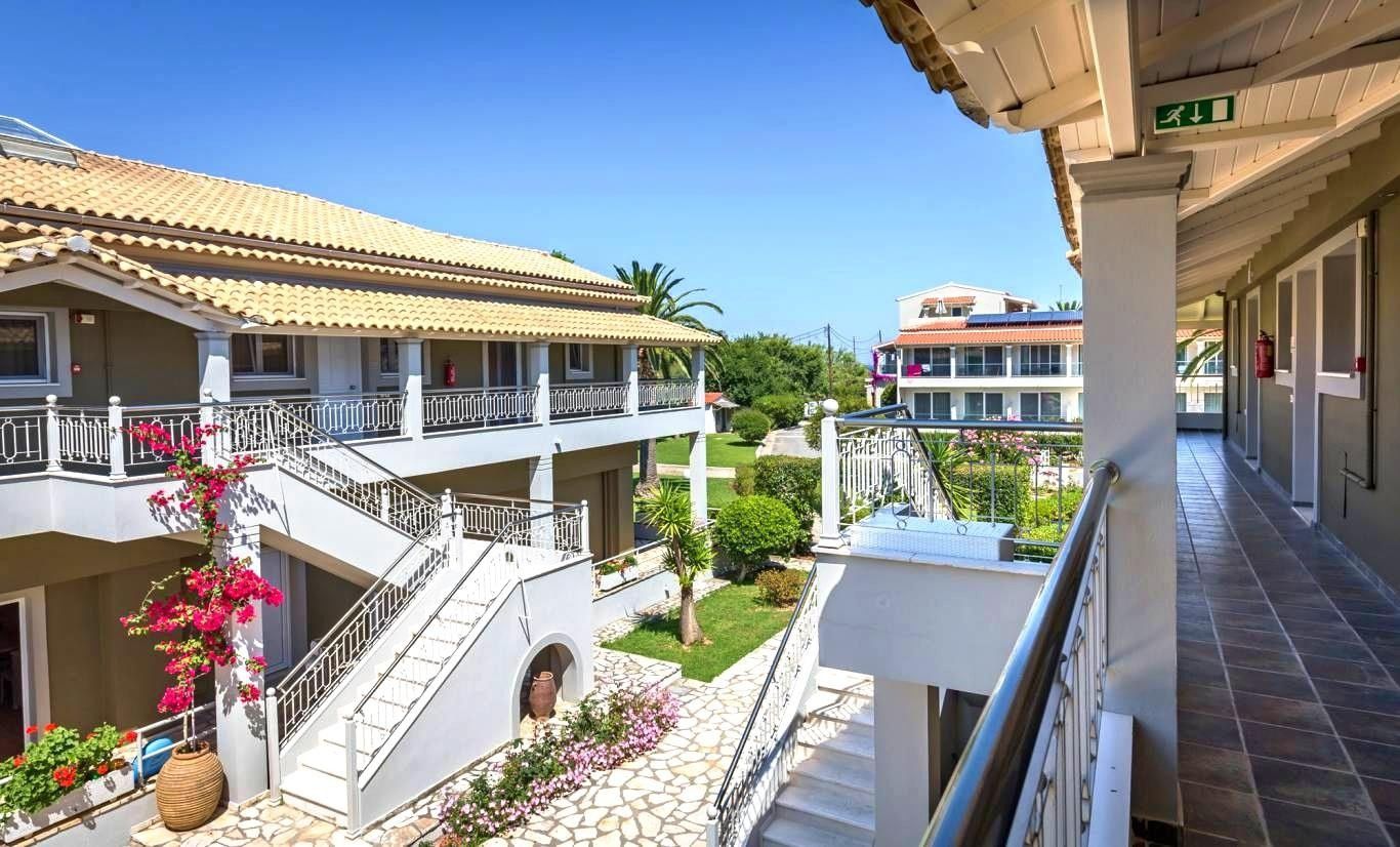 A főépületből és több kisebb épületből álló szálloda szép kertekkel körülölelt, csendes helyen, közvetlenül a leghosszabb homokos/kavicsos tengerparton fekszik. Acharavi falu, számos tavernával, bárral és üzlettel gyalog kb. 10 perc alatt elérhető. Acharavi közelében található a Hydropolis vízipark, amely felnőttek és gyermekek számára is kitűnő szórakozást kínál.