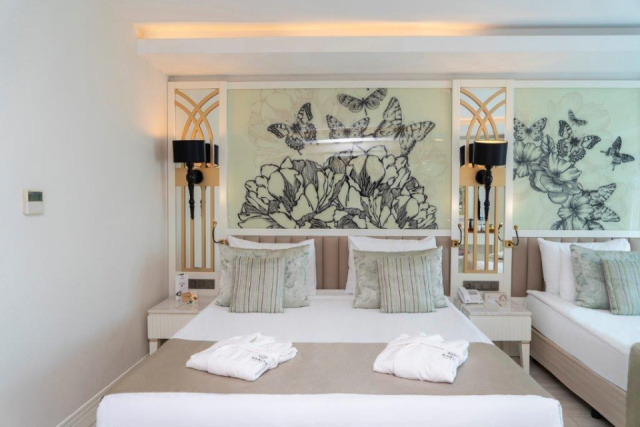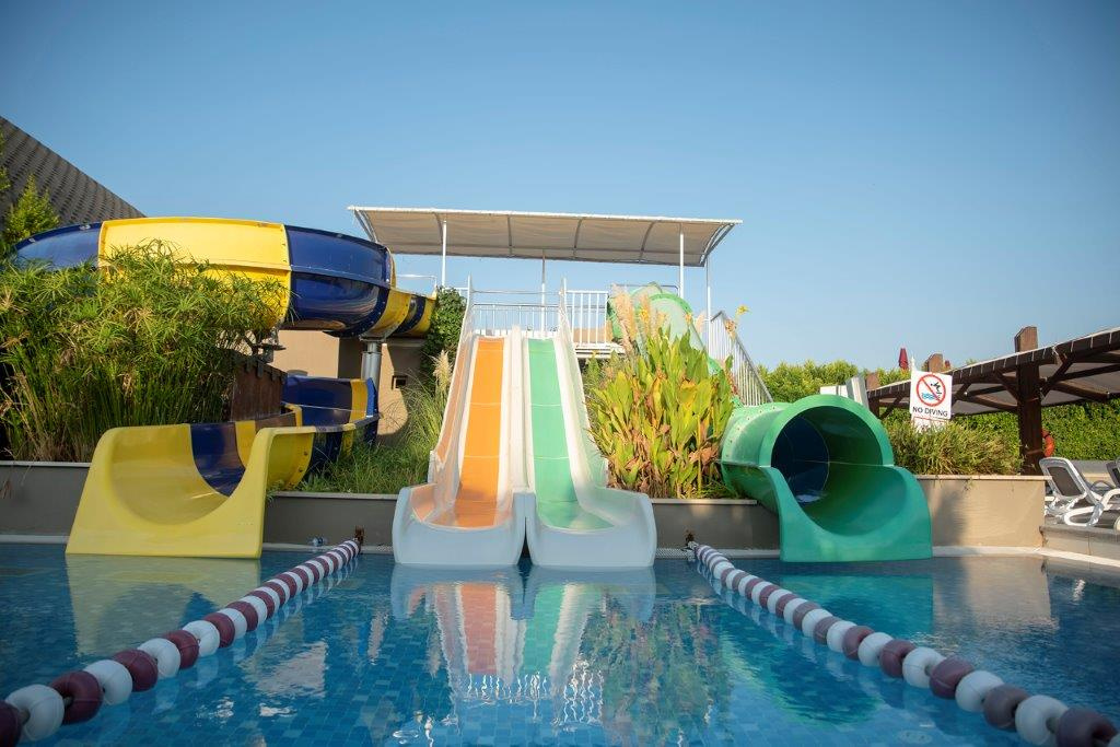 Fekvése: A 2016-ban nyitott, modern, elegáns szálloda az antalyai repülőtértől 10 km-re, a városközponttól 15 km-re fekszik, Kundu üdülőtelepen, közvetlenül a homokos-aprókavicsos, kék zászlós minősítésű, saját strandszakasza mentén. A szálloda széleskörű programkínálatának köszönhetően kiváló választás, akár párjával, akár családjával érkezik. Fedezze fel Antalya látnivalóit és bazárosait, élvezze a szálloda széleskörű szolgáltatásait, a mediterrán klímát és élvezze a nyaralás minden percét! Szolgáltatások: Medence napozóágyakkal és napernyőkkel, fél olimpiai medence, hullámmedence, gyermekmedence, relax medence csak 18 éven felüli vendégeknek, beltéri medence (csak a téli hónapokban), aquapark 5 nagy, 3 közepes és 3 kicsi csúszdával, nappali és esti animációs programok, kéthetente különleges party, mini klub (4-12 éveseknek), mini disco, török fürdő, szauna, fitnesz terem, aerobic, vízi torna, asztalitenisz, darts, boccia, strandröplabda. Térítés ellenében: Spa részleg kezelései, fodrászat, szépségszalon, játékterem, billiárd, vízi sportok a parton, orvosi szolgálat, üzletek, mosoda. Elhelyezés: A 606 modern szoba mindegyike rendelkezik központi légkondicionálóval, Sat-TV-vel, telefonnal, széffel, vízforralóval, minibárral, WiFi elérhetőséggel, hajszárítóval és erkéllyel. A standard szobák 31 nm-esek, max. 3 felnőtt részére foglalhatók. A családi szobák 2 szobások, ajtóval elválaszthatók egy franciaággyal és 2 külön ággyal felszerelve, max. 4 felnőtt részére foglalhatók. Ellátás: Ultra All Inclusive: Reggeli, ebéd és vacsora büférendszerben, késői reggeli, napközbeni snackek, éjjeli mini büfé (22:30-07:00), kávé/tea/sütemények, gözleme, fagylalt és gofri bizonyos időpontokban, helyi alkoholos és alkoholmentes italok a 24 órájában, minibár naponta vízzel, üdítőkkel és sörrel feltöltve, 4 a’la carte étterem (török, olasz, ázsiai, mexikói a tartózkodás során 1 alkalommal, előzetes asztalfoglalással). Térítés ellenében: Import és palackozott italok, hal a’la carte étteremben (előzetes asztalfoglalással), szobaszervíz.Egyéb: