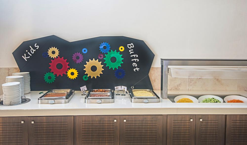 Étkezés: svédasztalos reggeli . Friss gyümölcsök, pékáruk, hideg és meleg fogások, tojásételek, zöldségek, joghurtok és különféle italok – kávé, tea, friss gyümölcslevek – teszik teljessé a kínálatot.. A félpanziós ellátás a reggelin kívül vacsorát is tartalmaz. A vacsora is svédasztalos formában zajlik, amely a nemzetközi és helyi ízek változatos kombinációját nyújtja. A vendégek helyi ciprusi specialitásokat is kóstolhatnak, valamint élvezhetik a tematikus estek változatos fogásait. Mind a reggelik és vacsorák során kiemelt figyelmet fordítanak az ételek minőségére, frissességére, és igyekeznek minden ételallergiát vagy diétás igényt is kielégíteni.