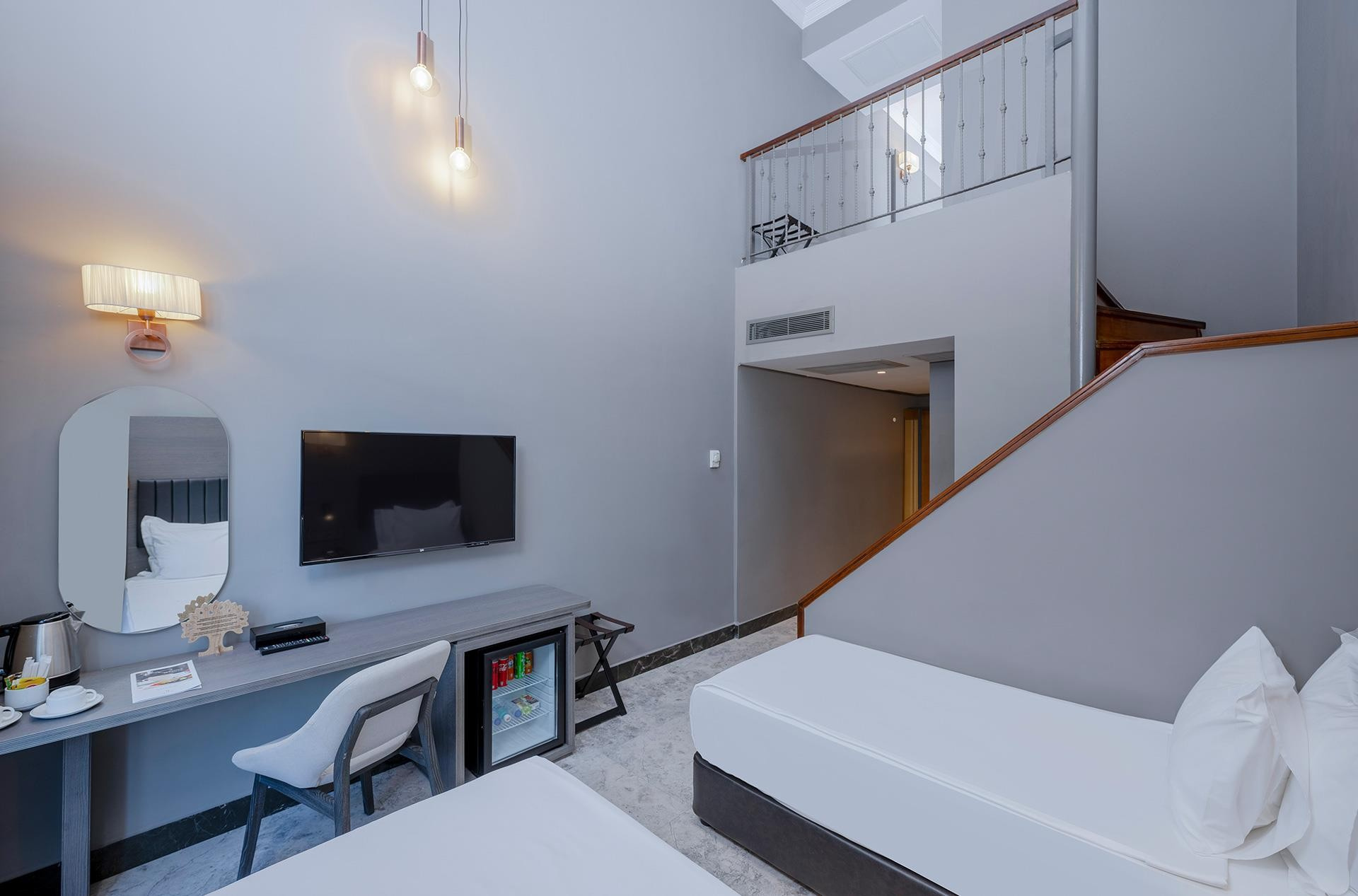 - Duplex családi szobák - kétszintes szobák, hálószoba és fürdőszoba, a melléképületben