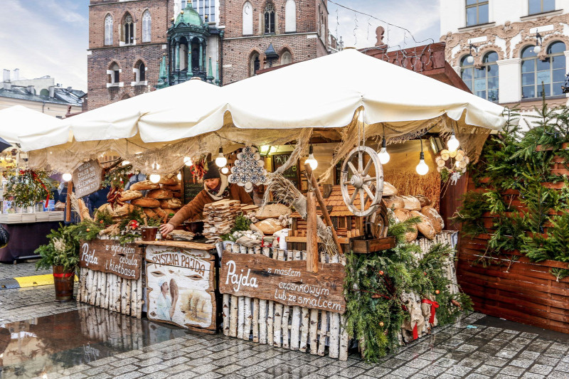 A Posztócsarnok és a Mária templom az óváros jelképei. A Posztócsarnokon (15. századi kereskedelmi központ) belül számtalan, igényes népművészeti üzlet kínálja portékáit. A Mária Templom, (mely Dél-Lengyelország egyik legfontosabb műemléke) előtt hallgathatjuk a toronyból a minden órában felhangzó Hejnał Mariacki-t (kürtszó), mely a város nevezetességévé vált. Városnéző sétánk befejezése után szabadprogram lesz, melynek keretein belül felfedezhetjük a hatalmas főtéren megrendezésre kerülő karácsonyi, adventi vásárt. Krakkó adventi vására nagyon igényes, sokféle árus portékáiból lehet Jézuska ajándékokat vásárolni.