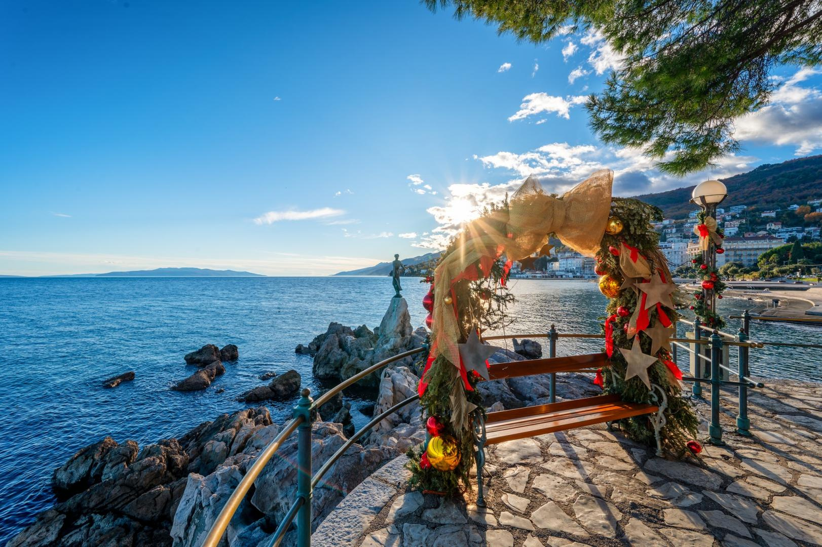 Indulás reggel 6.00 órakor Budapestről. Délutáni órákban érkezünk Opatija-ba, szállásfoglalás, majd, idegenvezetőnkkel gyalogos városnézés keretében megismerkedünk ennek a Monarchia idejéből híressé vált üdülővárossal. Szabad idő alatt Opatija város patinás villáival, épületeivel, parkjával és utcáival rabul ejt mindenkit. A karácsonyi énekek dallamai, a forralt bor és a forró csokoládé kellemes illata töltik be a város utcáit, felejthetetlen élményt nyújtva minden látogató számára. A kellemesen enyhe téli éghajlat, a tenger közelsége és az ünnepi légkör együttesen teremtik meg a tökéletes atmoszférát "álmai adventi ünnepéhez". Vacsora a szállodában.