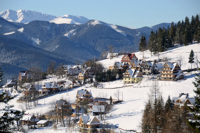 A Gubalowka-hegyről a Lengyel-Tátra vonulata, és az alatta elterülő kis városka panorámája is csodálatos.