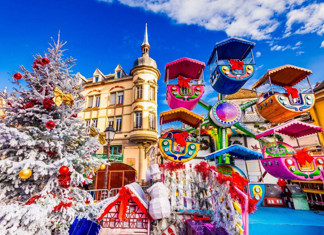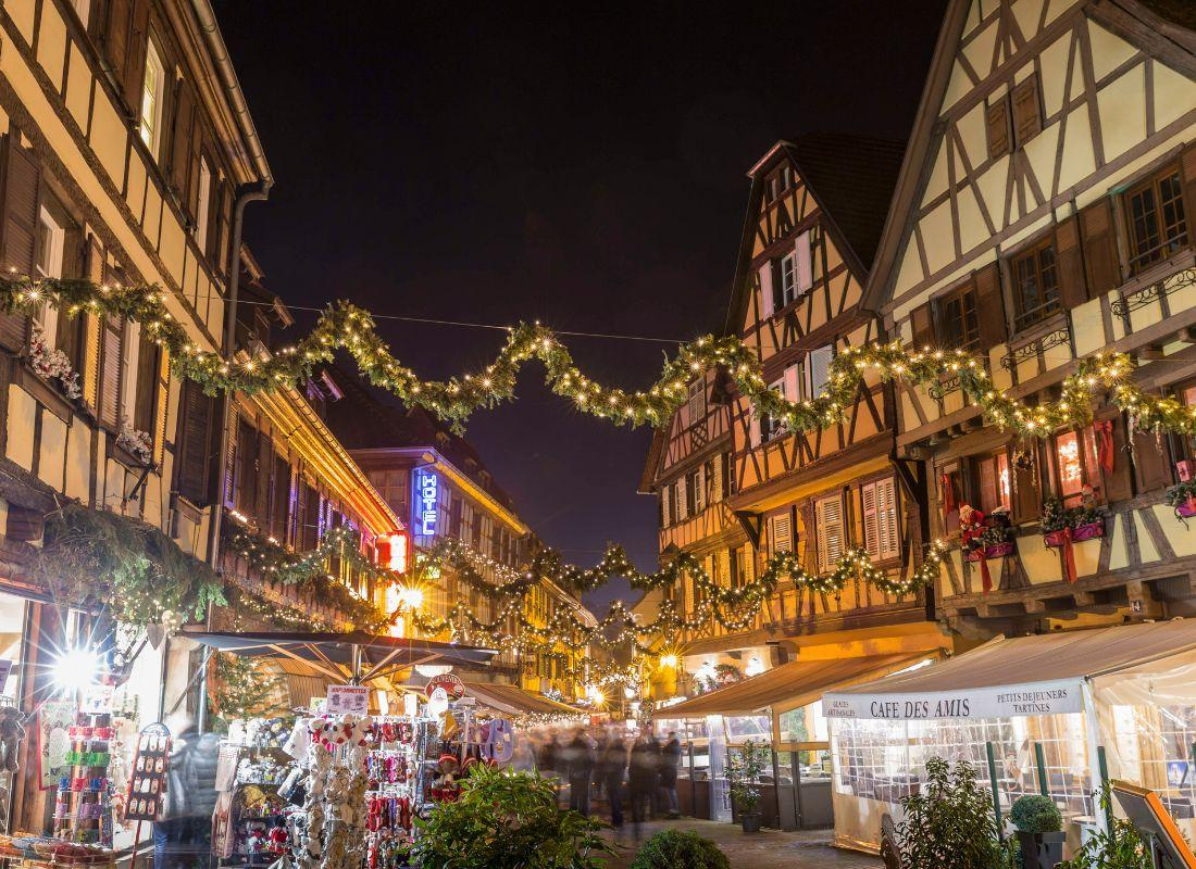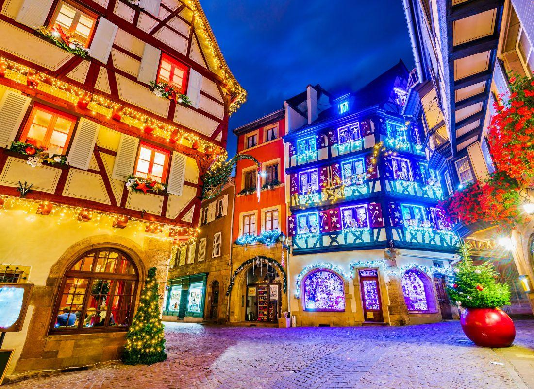 A karácsonyi vásárok több száz éves múltra tekintenek vissza Elzászban. Az egyik legrégebbi, a strasbourgi karácsonyi vásár mellett Colmar és Eguisheim is híres arról, hogy lenyűgöző ünnepi atmoszférát teremt. Advent idején a régiót áthatja a mézeskalács, a forralt bor és a fűszeres kuglóf illata, miközben karácsonyi dallamok töltik meg a levegőt.