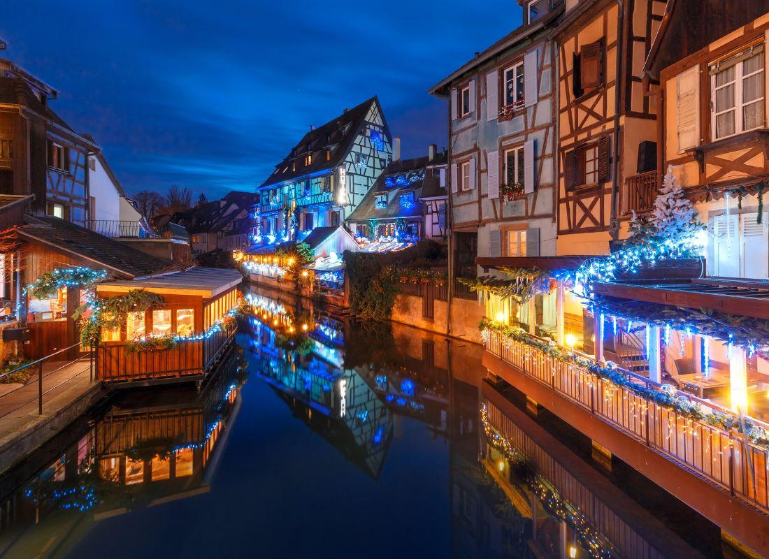 Colmar nem véletlenül vált a régió egyik legismertebb adventi úti céljává. A város egész évben lenyűgöz festői csatornáival, színes favázas házaival és romantikus kis utcáival, de advent idején igazi mesevilággá alakul. A házak homlokzatait ünnepi fények és dekorációk borítják, a főtereket pedig különböző karácsonyi vásárok díszítik. A helyi kézművesek és gasztronómiai kiállítók pultjain a legfinomabb elzászi édességek, forró italok és kézzel készült ajándéktárgyak sorakoznak.