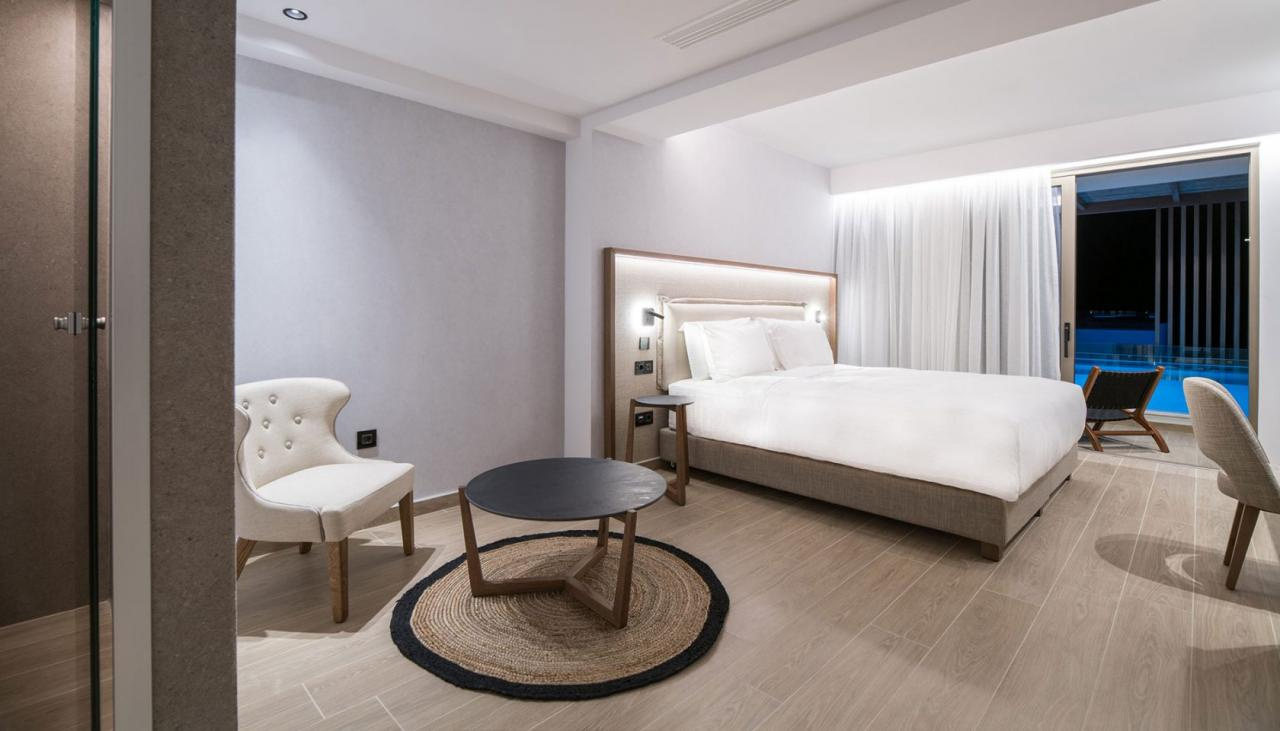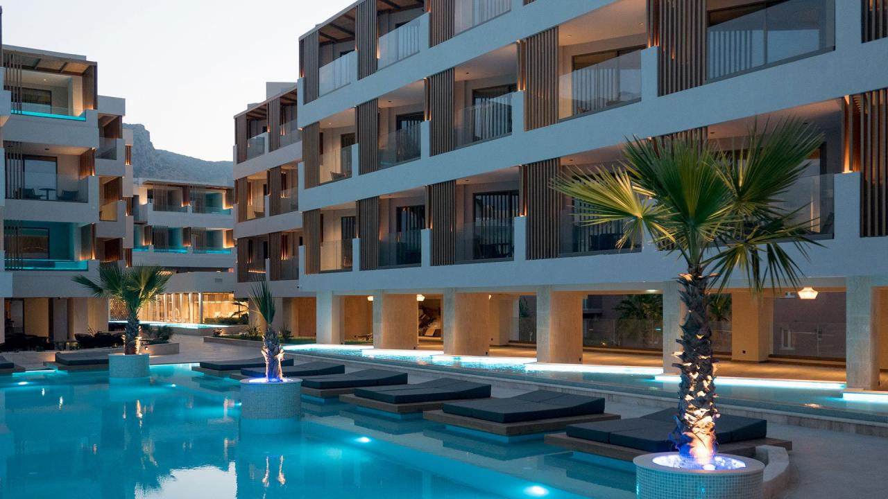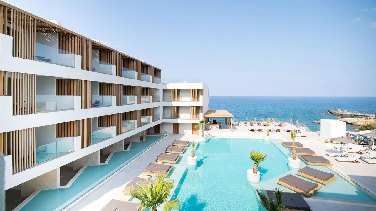 Az 5*-os szálloda a heraklioni repülőtértől kb. 26 km-re, Hersonissos központjától kb. 100 méterre, közvetlenül a homokos tengerparton helyezkedik el. Az épület előtt buszmegálló, a közelben számos étterem, bár, kávézó található.
