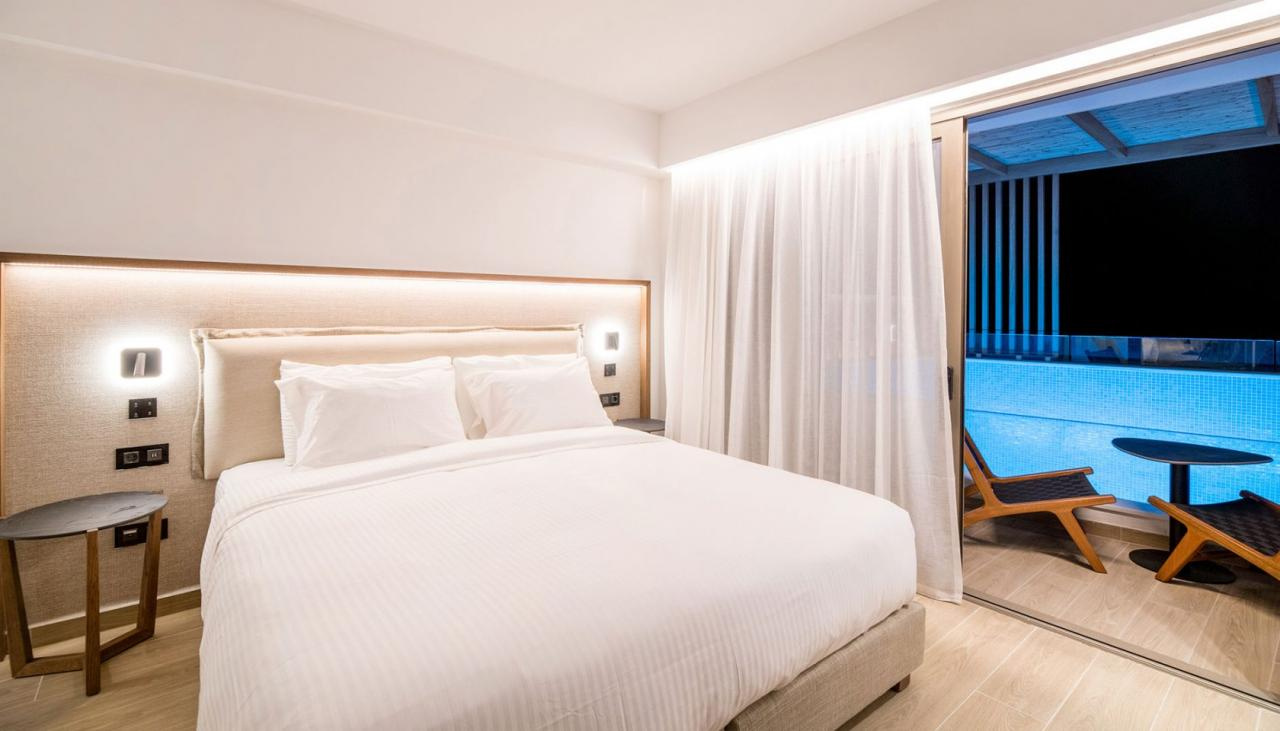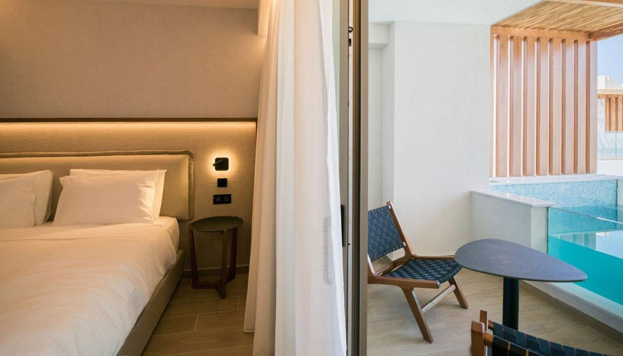 2-es, tengerre néző szoba, melynek erkélyén merülő medence található.