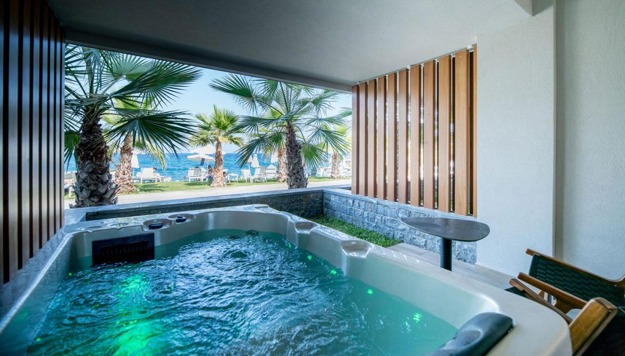 2-es, tengerre néző szoba, melynek erkélyén jakuzzi található.