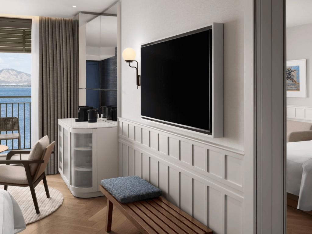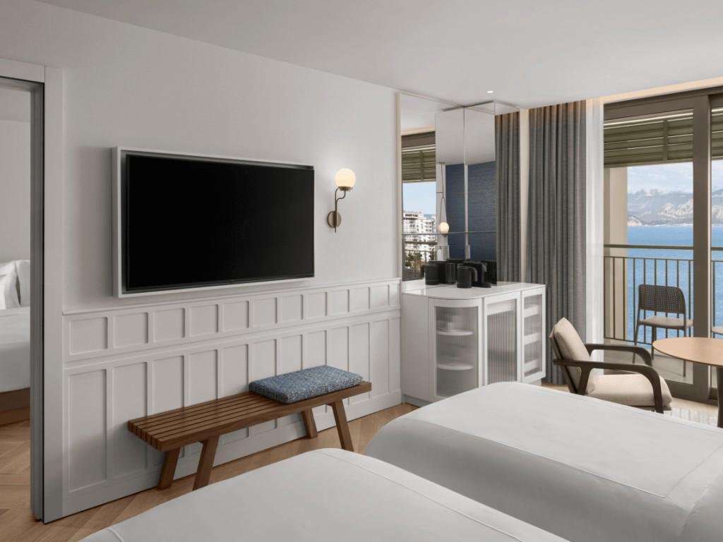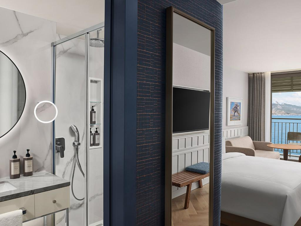 SZOBÁK: 471 szoba • erkély • központi légkondicionálás • hajszárító • telefon • TV • széf • minibár térítés ellenében • vízforraló • kávé- és teafőző • fürdőköpeny és papucs • wifi • deluxe szobák: 26-30 m², max. 3 fő részére, városra vagy tengerre néző kilátással • grand deluxe szobák: 38 m², max. 2+2 fő részére, tengerre néző kilátással