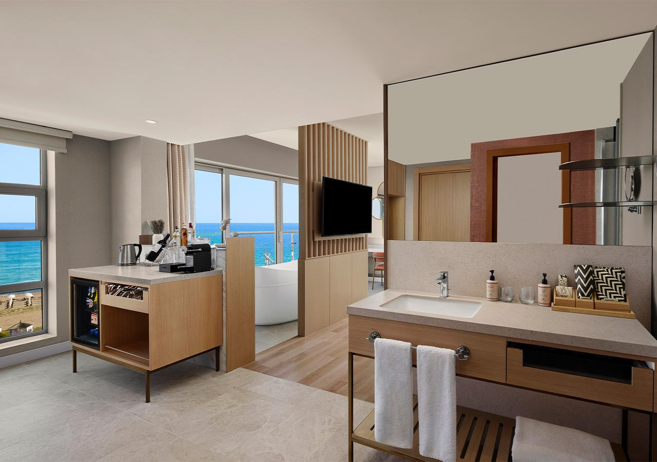 A szobákat légkondicionáló berendezéssel és fürdőszobával szerelték fel. A legtöbb szobában erkély gondoskodik a kilátásról. A legtöbb szoba tengerre néző kilátást biztosít. A gyermekeknek igény esetén kiságyat biztosítanak. Ezen kívül van széf és minbár is. Az alapfelszereltséghez tartozik egy tea-/kávéfőző is. A felszereltséget telefon, TV-készülék és WiFi egészíti ki. A szobákban szobapapucs is található. Mozgáskorlátozottaknak kialakított szobák is foglalhatóak. A fürdőszobákban a vendégek rendelkezésére áll egy hajszárító és fürdőköpenyek is. Akadálymentesített fürdőszoba is foglalható. Családi szobát és nem dohányzó szobát is foglalható.