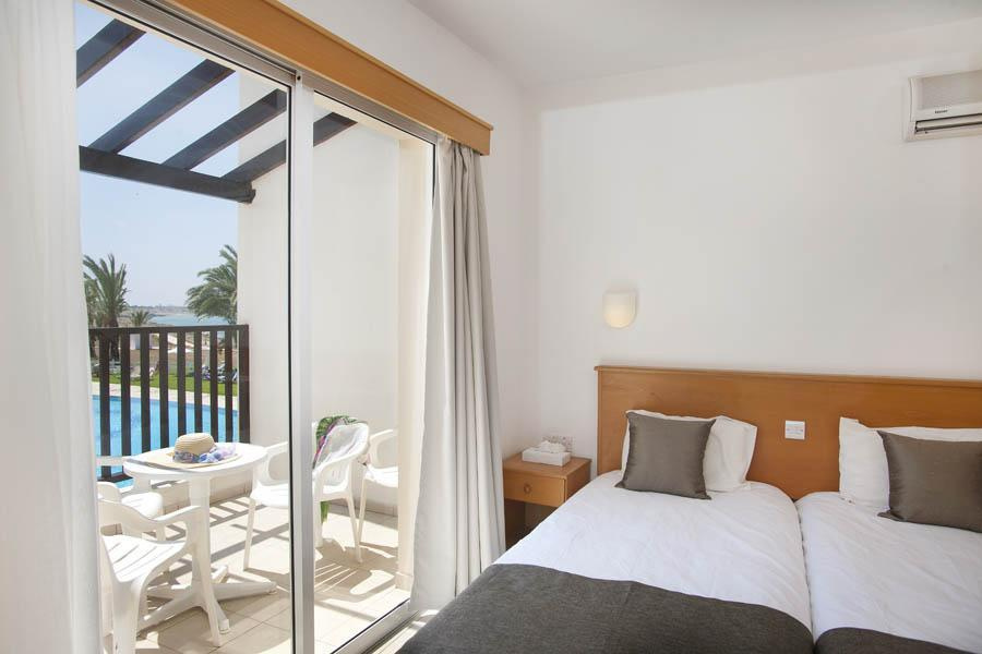 Szobák: minden stúdió (kb.38 m2) és családi apartman (kb.55 m2) a kerti épületekben található, letisztult színvilágú, praktikusan berendezett, légkondicionált, fürdőszobás, konyhasarokkal, hűtővel, vízforralóval, kenyérpirítóval, síkképernyős tv-vel és telefonnal felszerelt. A családi apartmanok tágasabbak, hálószobával és nappalival (kanapéágy) rendelkeznek. A szobához erkély vagy terasz tartozik, szárazföldi vagy kertre néző kilátással. A szuperior szoba szebben berendezett, prémium színvonalú, hotelszoba kialakítású (konyha nélküli), felszereltségben extraként fürdőköpeny és papucs szerepel, a szobához medencére néző erkély tartozik. Szobaszéf a helyszínen térítés ellenében bérelhető.