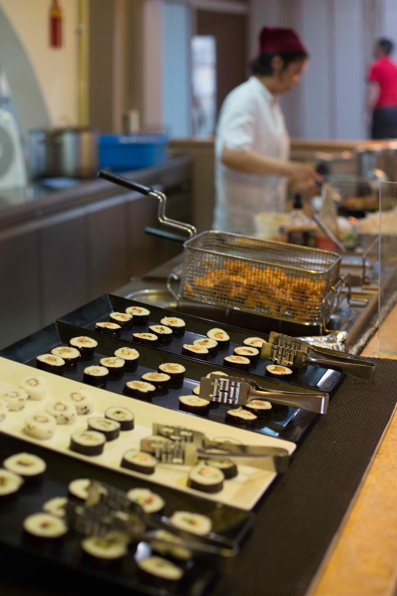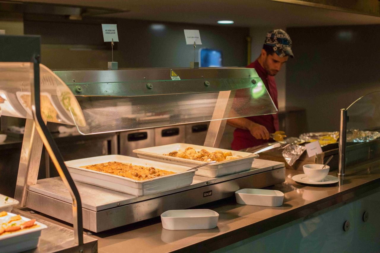 Ultra all inclusive ellátással foglalható, mely tartalmazza a reggelit, ebédet, vacsorát, valamint a helyi alkoholos- és alkoholmentes italokat. Napközben snackételeket, desszertet, gyümölcsöt kínálnak. Tematikus éttermeiben (görög tengergyümölcsei, ázsiai ételek és sushi, tradicionális görög konyha, olasz fogások) előzetes foglalást követően lehet vacsorázni. A szálloda nyolc étteremmel és öt bárral rendelkezik.