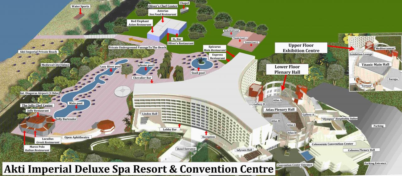 A hotel Ixia városában található, Rodosz városközpontjától és óvárosától csupán 4 km-re, míg a Diagoras nemzetközi repülőterétől 12 km-re. A szálloda privát homokos-kavicsos tengerpartja egy privát aluljárón keresztül érhető el.