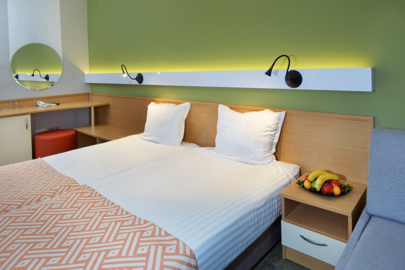 98 szobájának mindegyike bútorozott erkéllyel, pótágyazható kanapéval, légkondicionálóval, kábel TV-vel, telefonnal, minihűtővel, WI-FI-vel, zuhanyzós fürdőszoba/WC-vel rendelkezik.