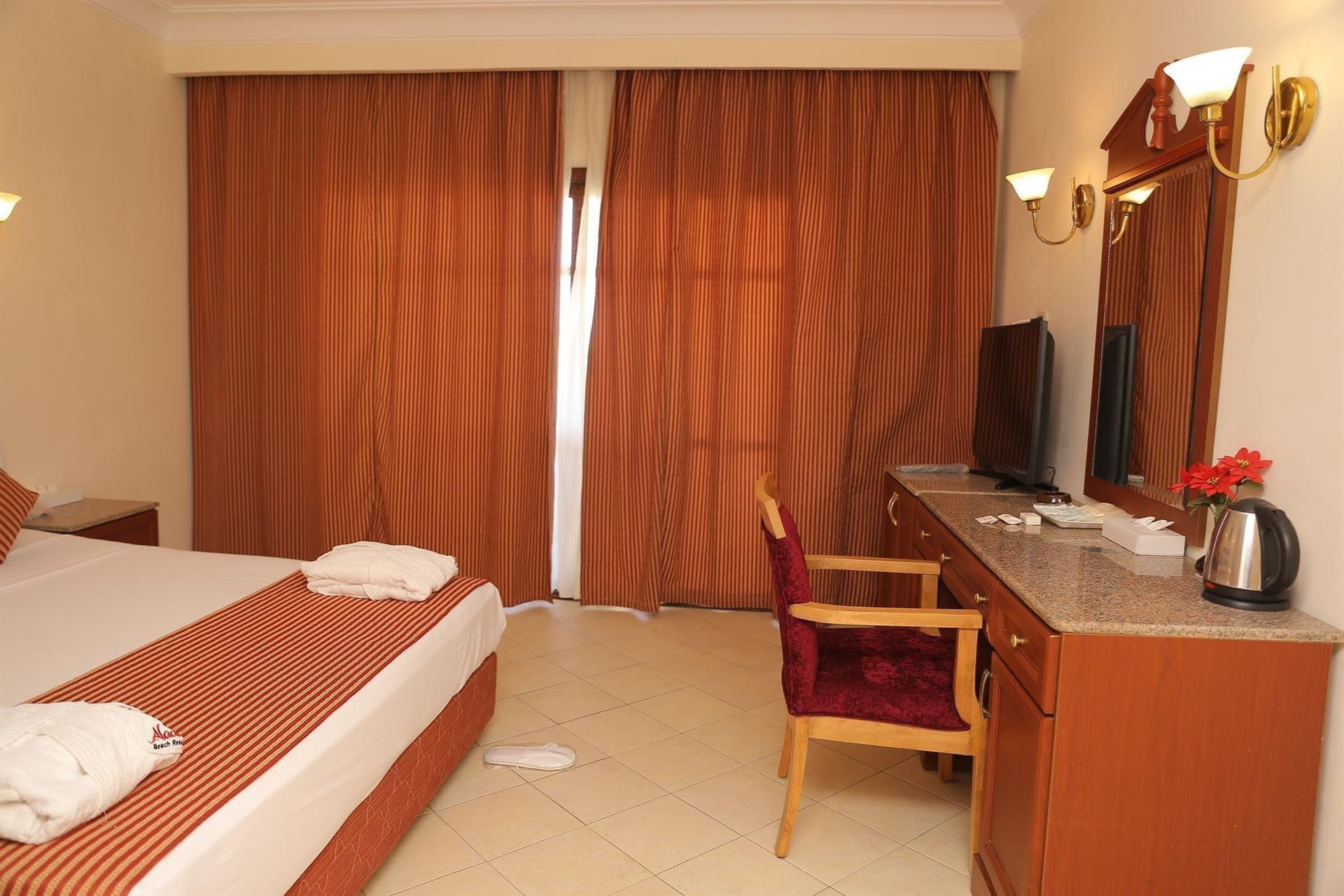 Az Aladdin Beach Resort Hurghada vendégei korlátozás nélkül használhatják a szomszédos Ali Baba Palace Hurghada szálloda strandját, strandbárját, úszómedencéit és vízi parkját, valamint vacsorát is foglalhatnak a főétteremben.