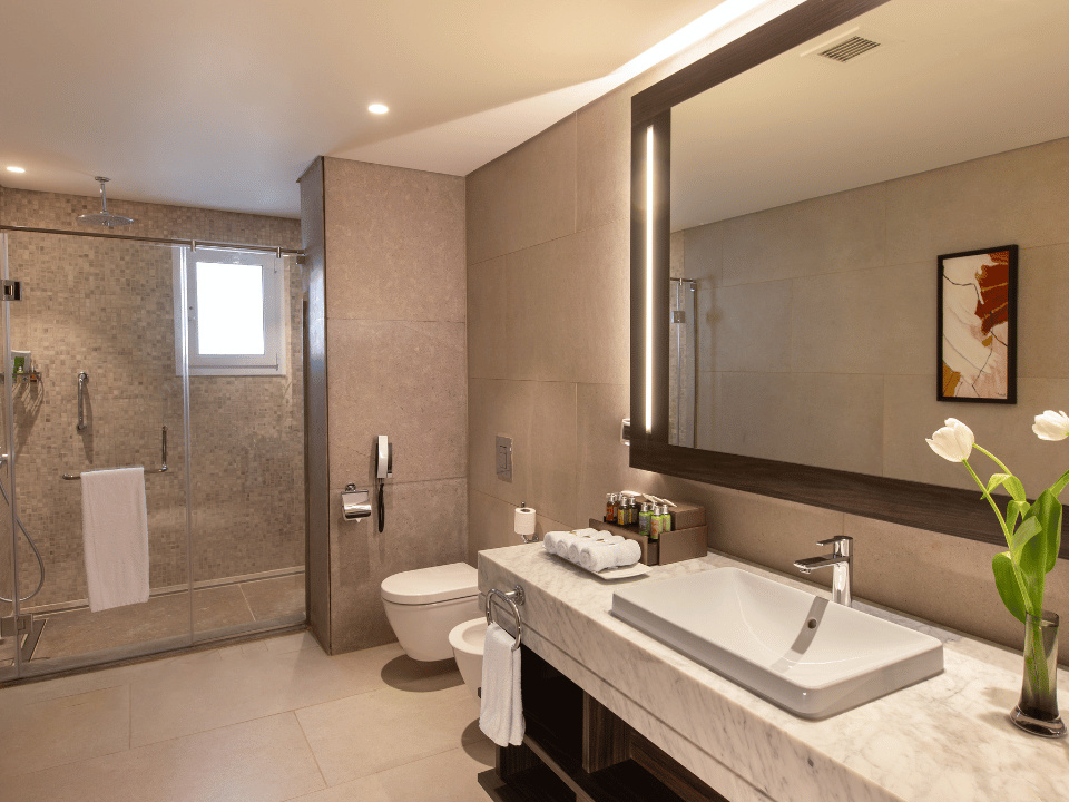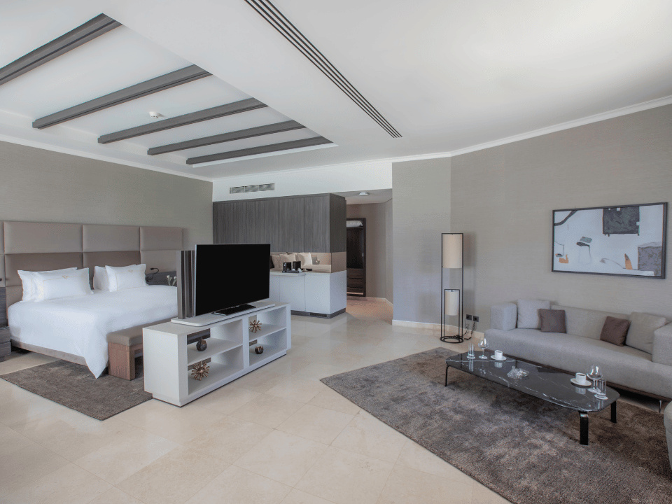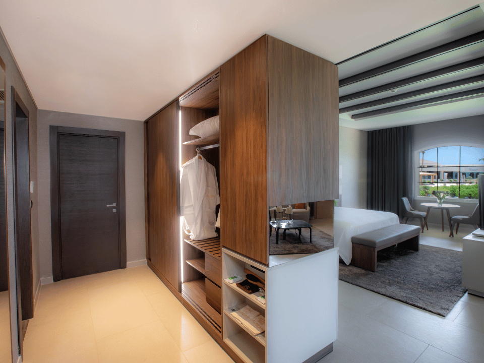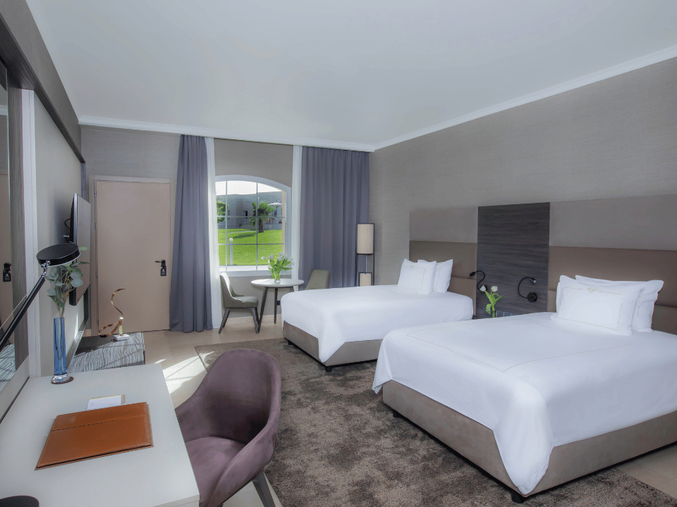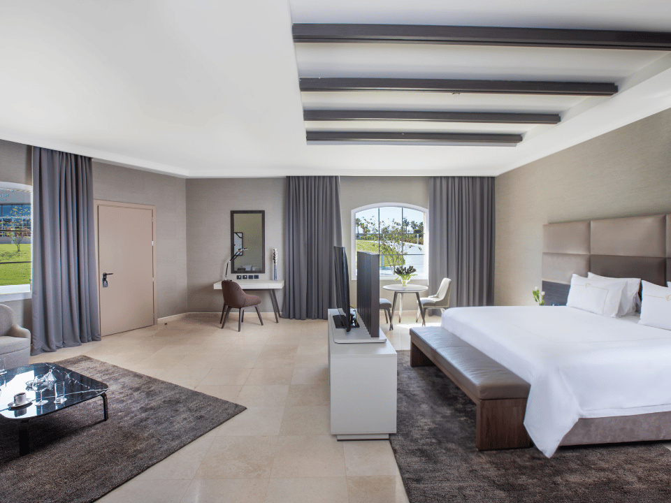 SZOBÁK A komplexum 151 Deluxe szobából, 86 Executive Suites, 7 Presidential Suites áll egy szinten. Minden szoba ingyenes Wi-Fi-vel felszerelt. Ezen kívül minden szobában olyan kényelmi szolgáltatások állnak rendelkezésre, mint például tea- és kávékészlet, a minibárt naponta üdítőkkel és vízzel is díjmentesen feltöltik., kád vagy zuhanyzó és légkondicionáló is rendelkezésre áll. A deluxe kétágyas szobák (DZX) 60 m² Kertre nyíló kilátással. Executive kétágyas lakosztályok is rendelkezésre állnak (DEX) 90 m² Tágas lakosztály 1 hálószobával, 1 káddal ellátott fürdőszobával, ülősarokkal és terasszal, ahol a vendégek pihenhetnek. A légkondicionált lakosztály TV-vel, hangszigetelt falakkal, minibárral, tea- és kávéfőzővel, valamint kertre néző kilátással rendelkezik. A szálláson 1 franciaágy található.