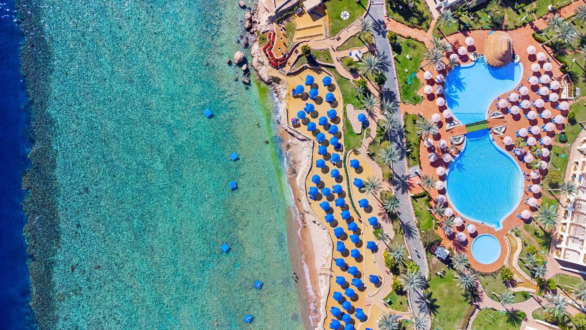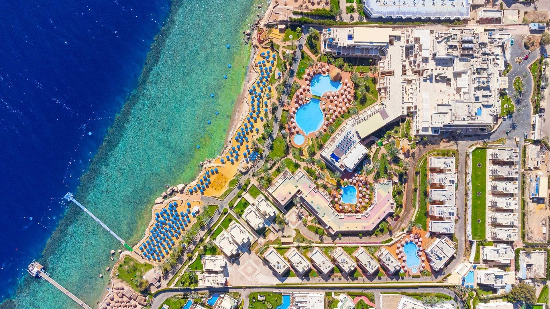 A Sarm el-Sheikh szigetén, az Om El Seid fennsík szélén található, közvetlenül a szálloda saját, 400 m hosszú kőstrandján, tengeri korallzátonyokkal (fürdőcipő ajánlott). A közvetlen közelben bevásárló- és szórakozóhelyek találhatók. A Sharm El Sheikh repülőtér körülbelül 18 km-re található.