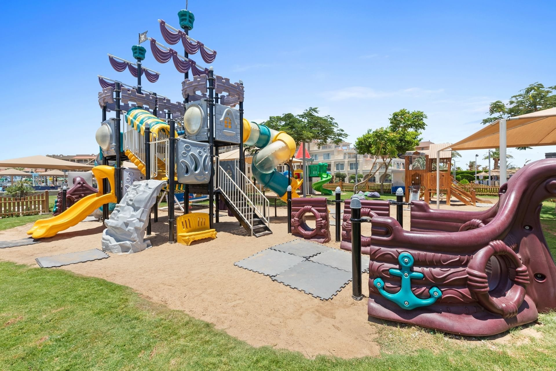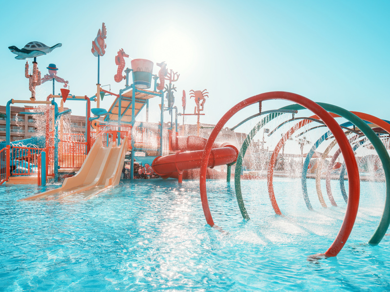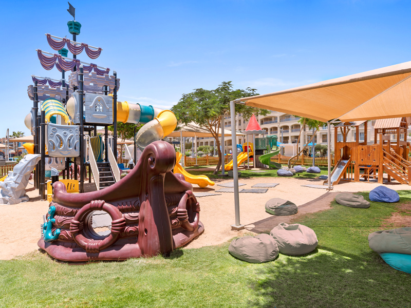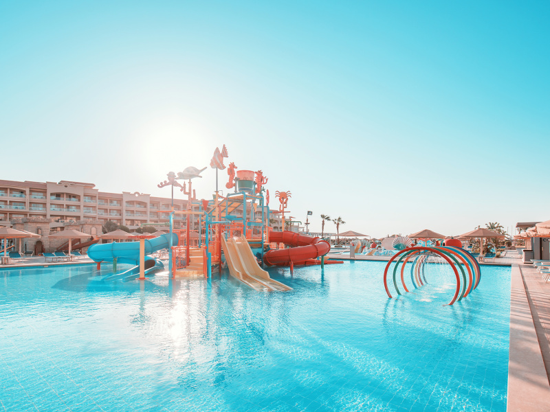 Az üdülőkomplexum 473 szobából áll, 1 főépületben és 2 szárnyban helyezkednek el. A lobby recepcióval, az egész komplexumban elérhető WiFi, különféle éttermek (olasz, ázsiai, keleti vagy nemzetközi konyha), snack bár, 7 különböző kávézó és bár, valamint üzletek állnak rendelkezésre. A helyszínen fodrászat és szépségszalon is működik térítés ellenében. Medencerész 2 felnőtt medencével (melyek közül az egyik télen fűtött) és 4 gyermekmedencével (mind fűtött), összesen 16 csúszdával. A medencénél és a strandon nyugágyak, napernyők és strandtörölközőket biztosítotanak.