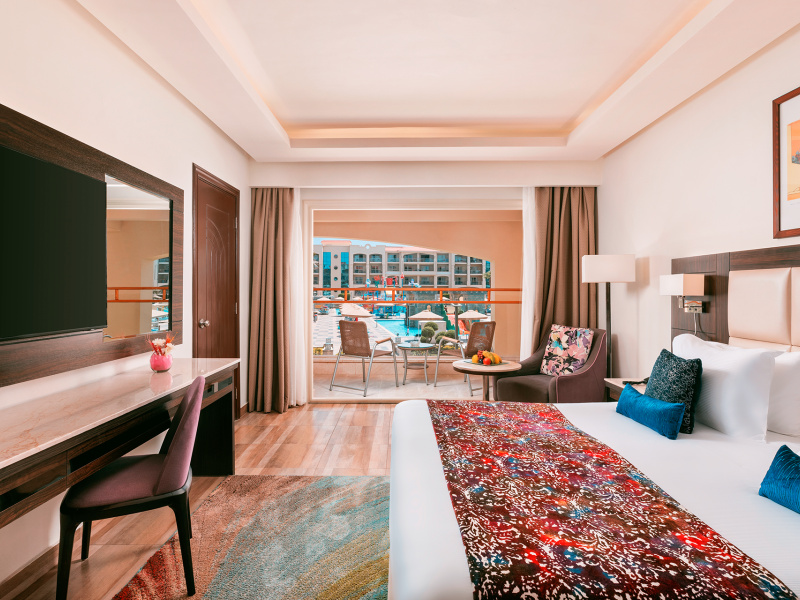 SZOBÁK: Kényelmes deluxe szobák (kb. 40nm2) zuhanyzóval, WC-vel, hajszárítóval, telefonnal, légkondicionálóval, műholdas TV-vel, széffel, WiFi-vel, vízforralóval, minibárral és erkéllyel . A deluxe szobák foglalhatóak kilátással a medencére (DXP), vagy oldalról tengerre néző (DXQ/EXQ) vagy közvetlen tengeri kilátással is (DXM/EXM). A medencére néző junior lakosztályok (kb. 70 nm) (DJP) egy nagy hálószobából és egy tágas ülősarokból állnak. Ezek tengerre néző kilátással is foglalhatók (DJM).