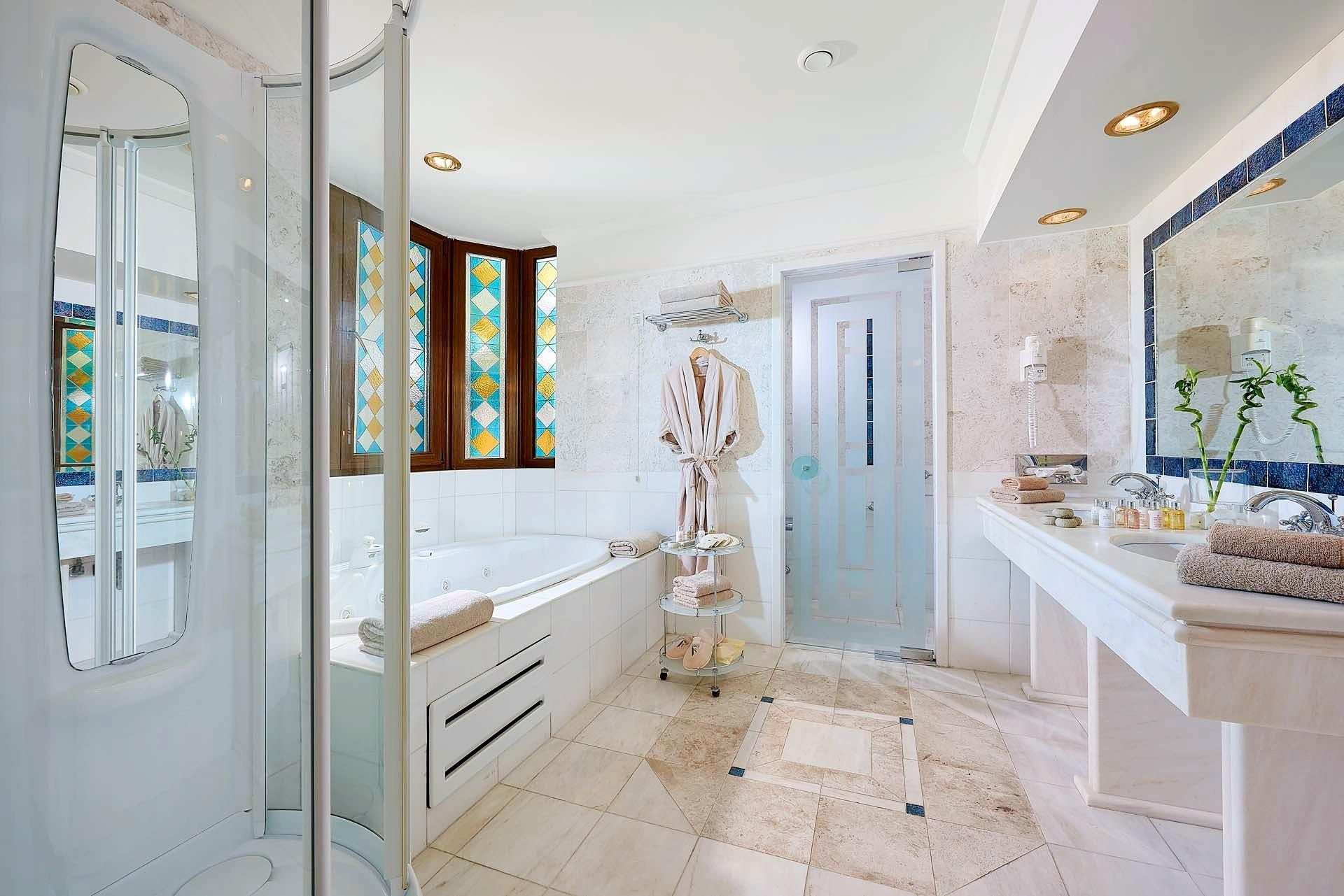 - Jacuzzi-suitek - tágasabbak, külön közös medence, pezsgőfürdő, szauna