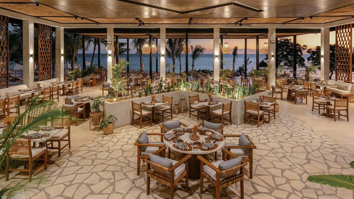 A vendégek három étterem közül választhatnak, melyek közül egy à la carte étterem (The Cave vagy The Japanese Hub) 10 EUR/fő/alkalom díj ellenében, előzetes foglalással vehető igénybe. A Jua főétterem svédasztalos formában kínál helyi és nemzetközi ételeket, tematikus vacsorákkal, valamint gyermekmenüvel és etetőszékekkel, miközben gyönyörű kilátás nyílik az óceánra. A The Cave étterem különleges, sziklás mélyedésben helyezkedik el, és afrikai ízeket kínál, míg a The Japanese Hub japán specialitásokat szolgál fel. A szálloda három bárja – a The Hub bár a hallban, az Island bár és a Sunset bár vízipipával a medence mellett – kellemes helyszínt biztosít a pihenéshez és frissítő italokhoz.