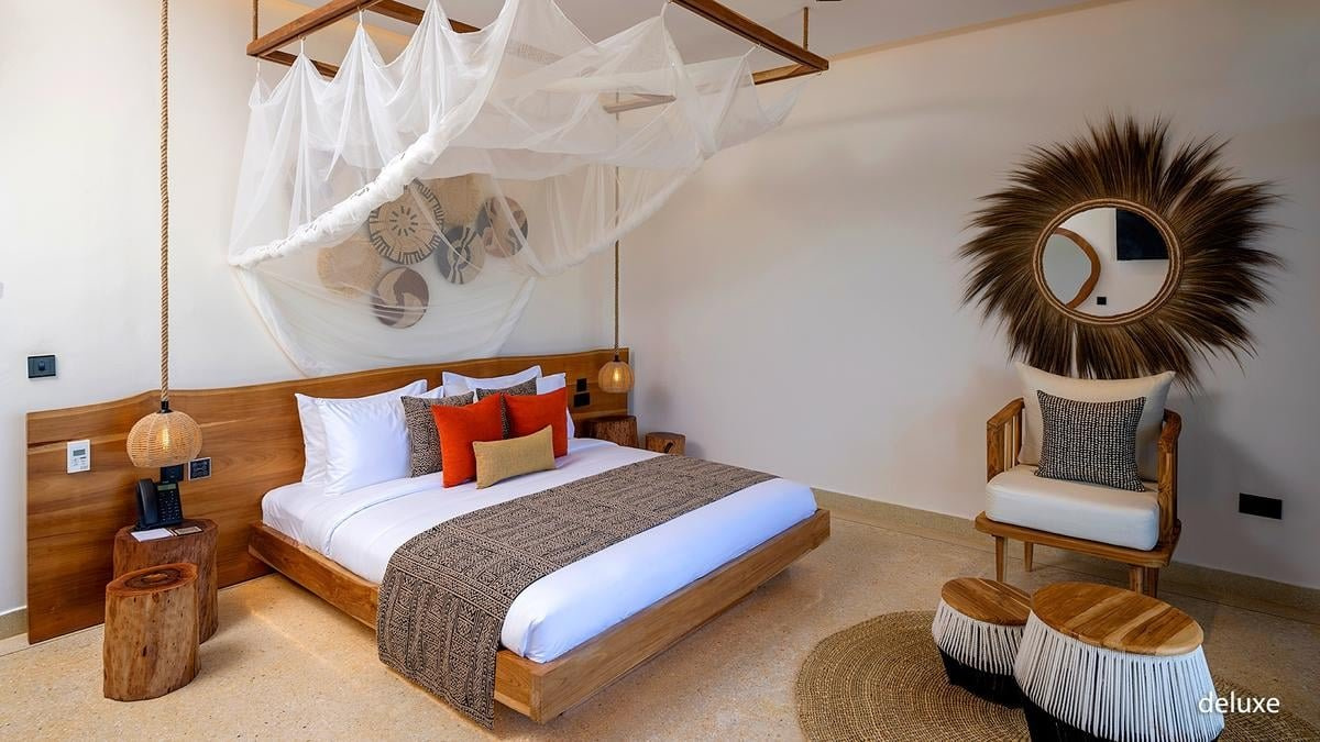 A 60 m²-es prémium kategóriájú szoba tágas és elegáns, king size vagy külön ágyakkal, öltözőrésszel és ülősarokkal. A részleges vagy óceánra néző teraszról kültéri jacuzzi is elérhető, ideális a pihenéshez.