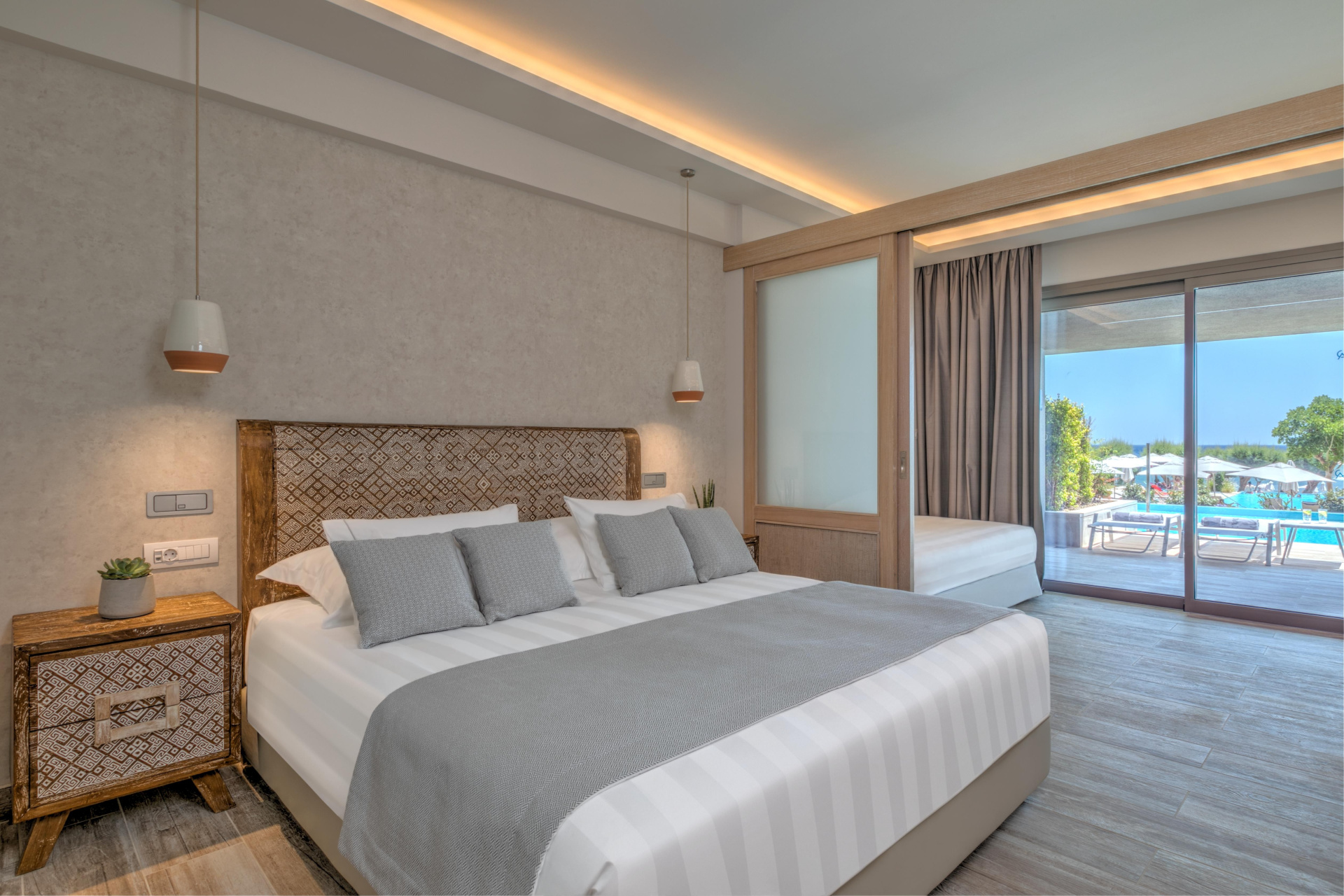 - családi szobák - tengerre nézők, optikailag elválasztott szoba tolóajtóval