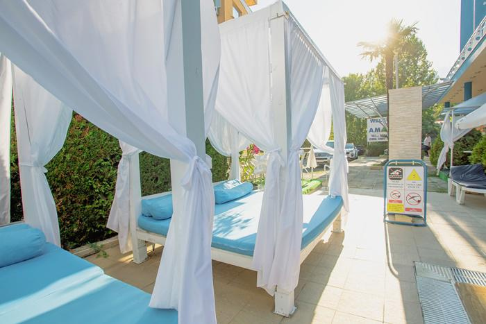 STRAND: kb. 300 m-re a szállodától • napernyők és napozóágyak térítés ellenében vehetők igénybe