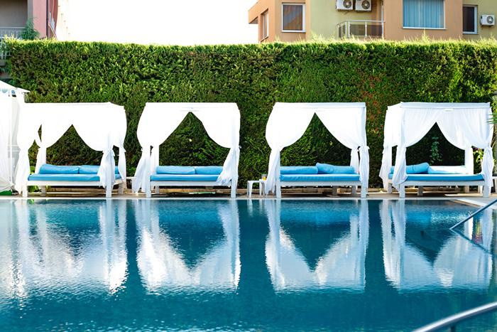 SZOLGÁLTATÁSOK: medence napernyőkkel és napozóágyakkal • étterem • medencebár • wifi • parkolás
