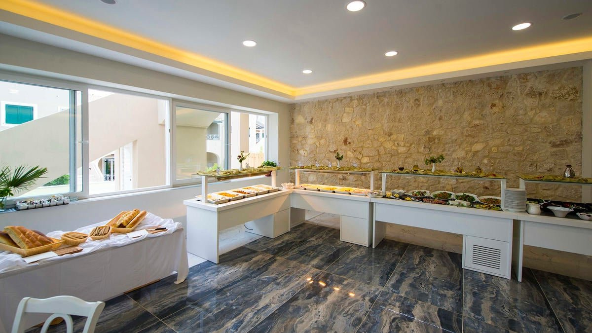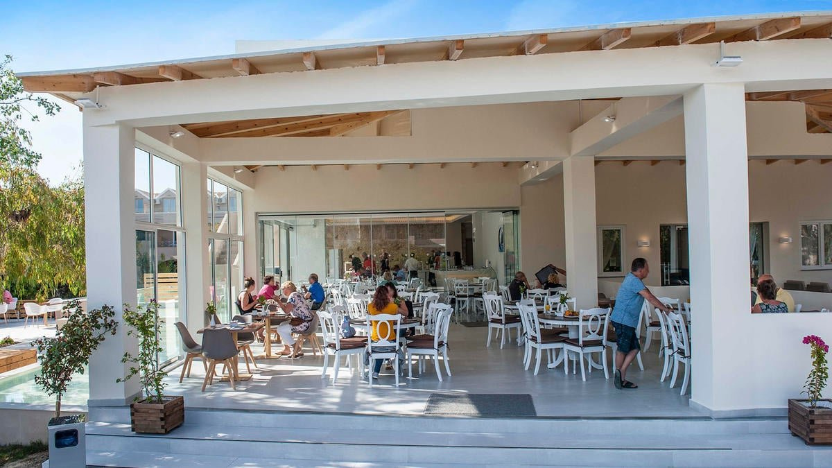 All inclusive ellátás tartalmazza: reggeli (7:30-10:00), késői reggeli (11:00-12:00), ebéd (12:30-14:30), vacsora (19:00-21:30). Helyi alkoholos és alkoholmentes italok a bárban (10:30-22:45) Senses étterem – büfé jellegű, görög és nemzetközi konyha, vegetáriánus ételek, a vacsoránál az uraknak hosszú nadrág viselése az előírt. Medence bár – Mystique.