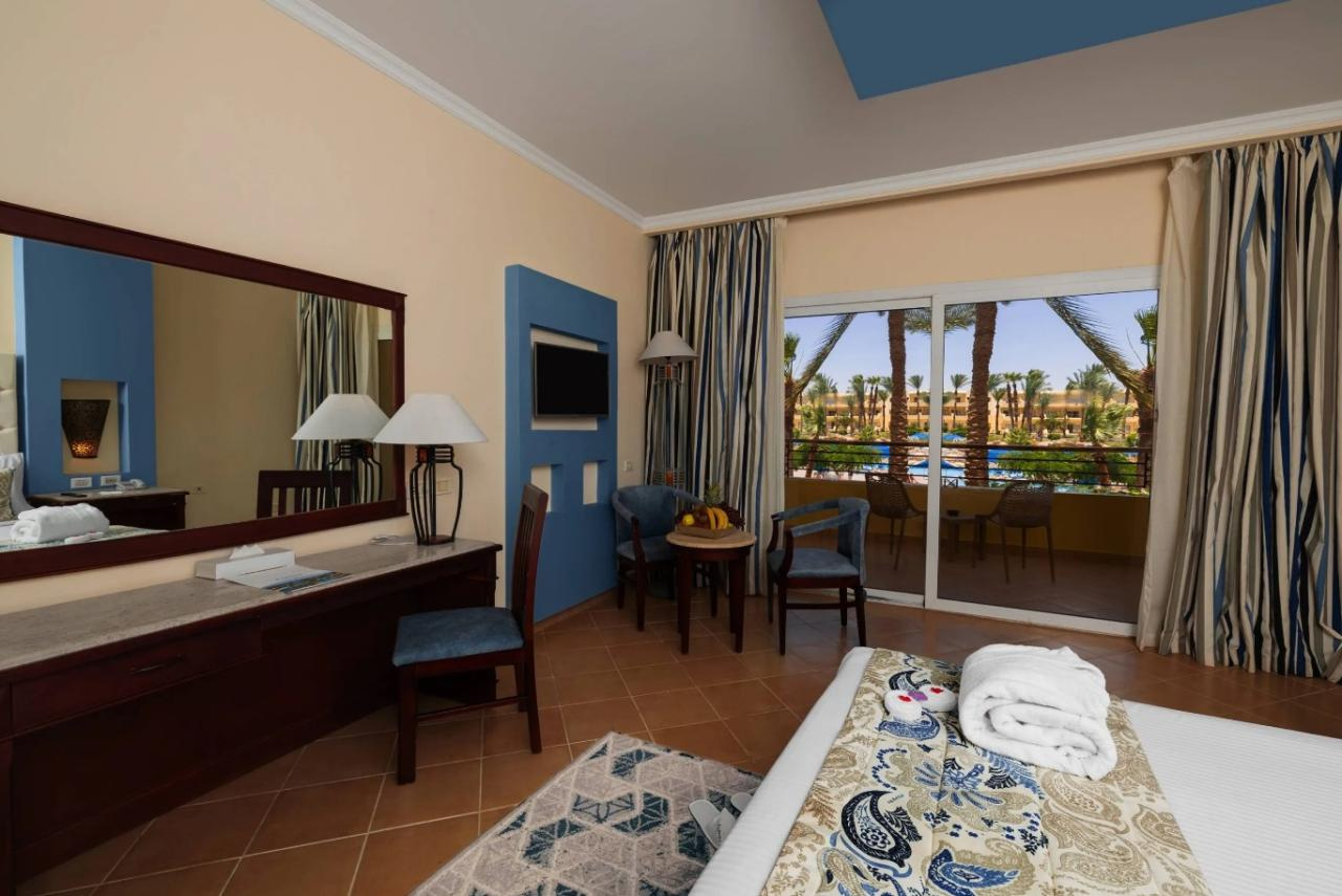 Amwaj Oyoun Resort - Sharm El Sheikh szobái tágas ülősarokkal felszereltek, síkképernyős, műholdas TV-vel. A saját fürdőszobák káddal és telefonnal ellátottak.
