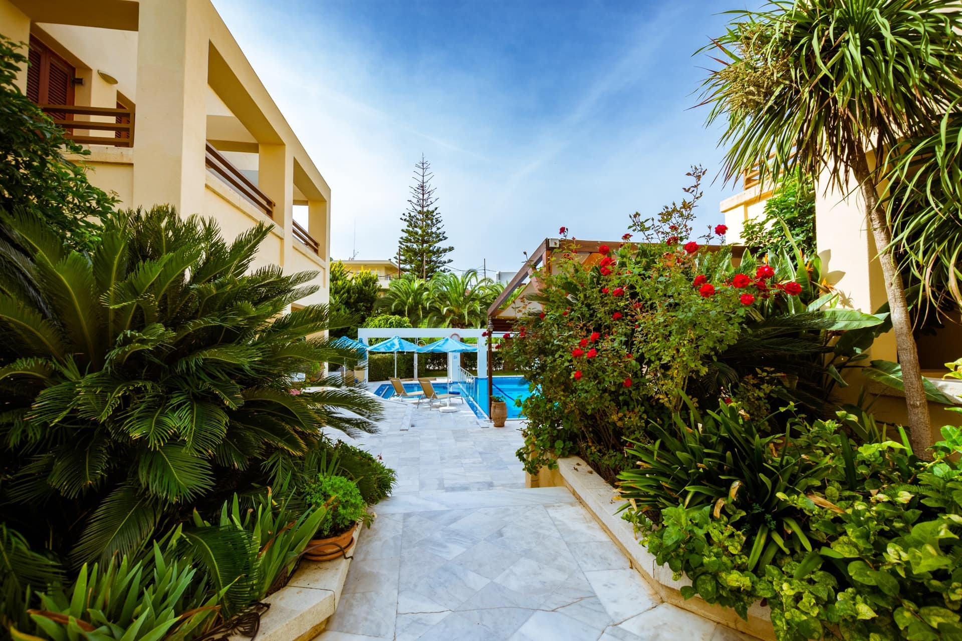 A szálloda Chania repülőterétől kb. 10 km-re, a tengerparttól pedig kb. 350 méterre található.