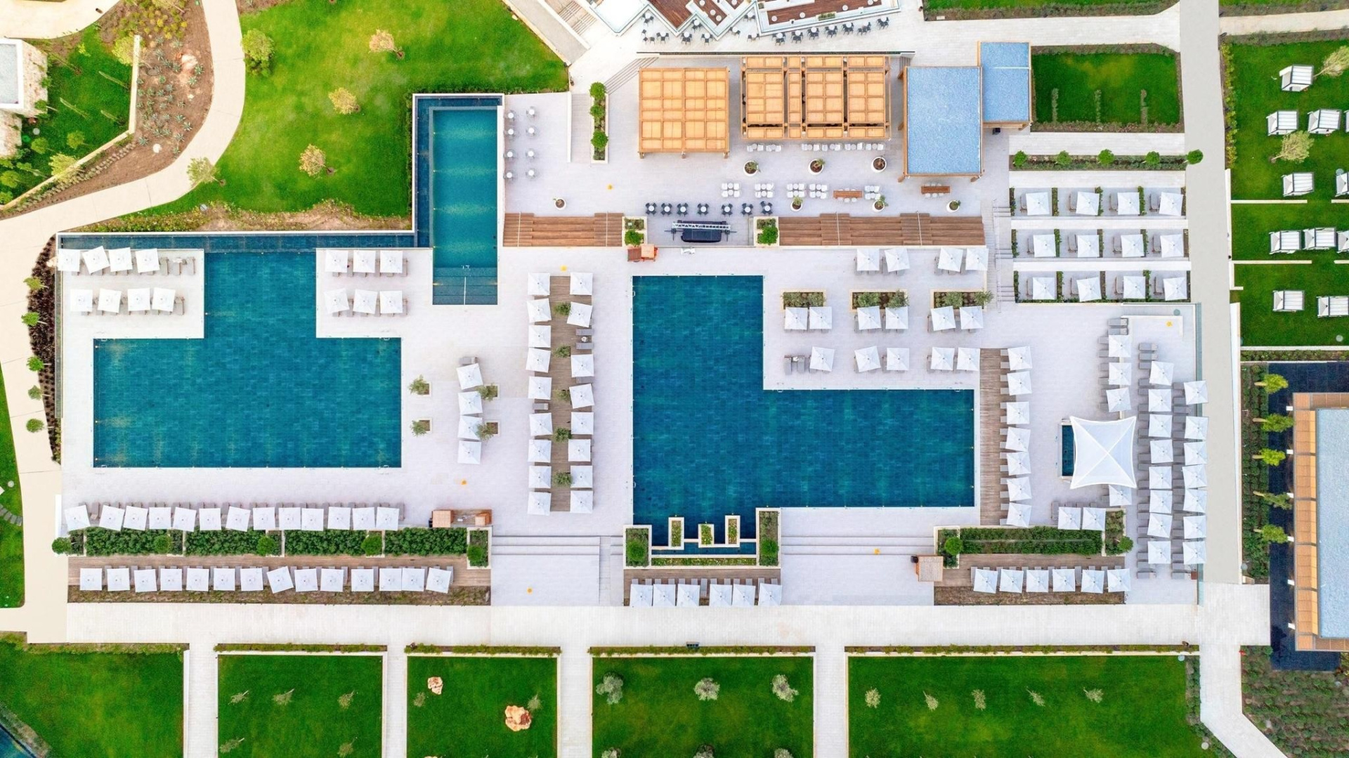 - medencék (2 családi zóna - tengervizes, 2 közös zóna - úszómedence, gyermekmedence, 1 felnőtt zóna), napágyak, matracok, napernyők és törülközők ingyenesen