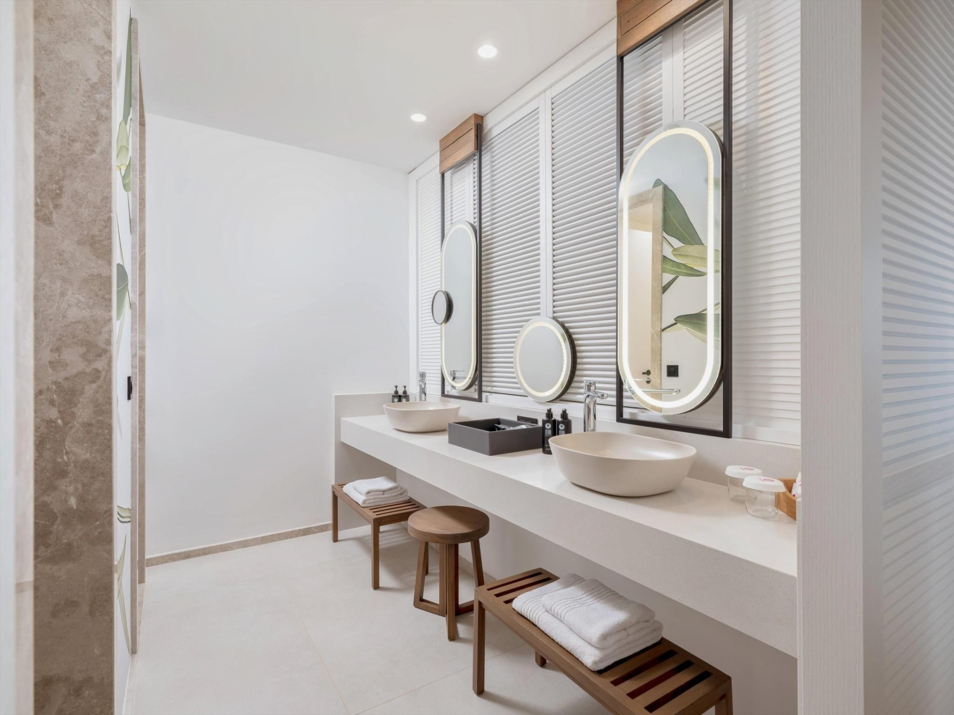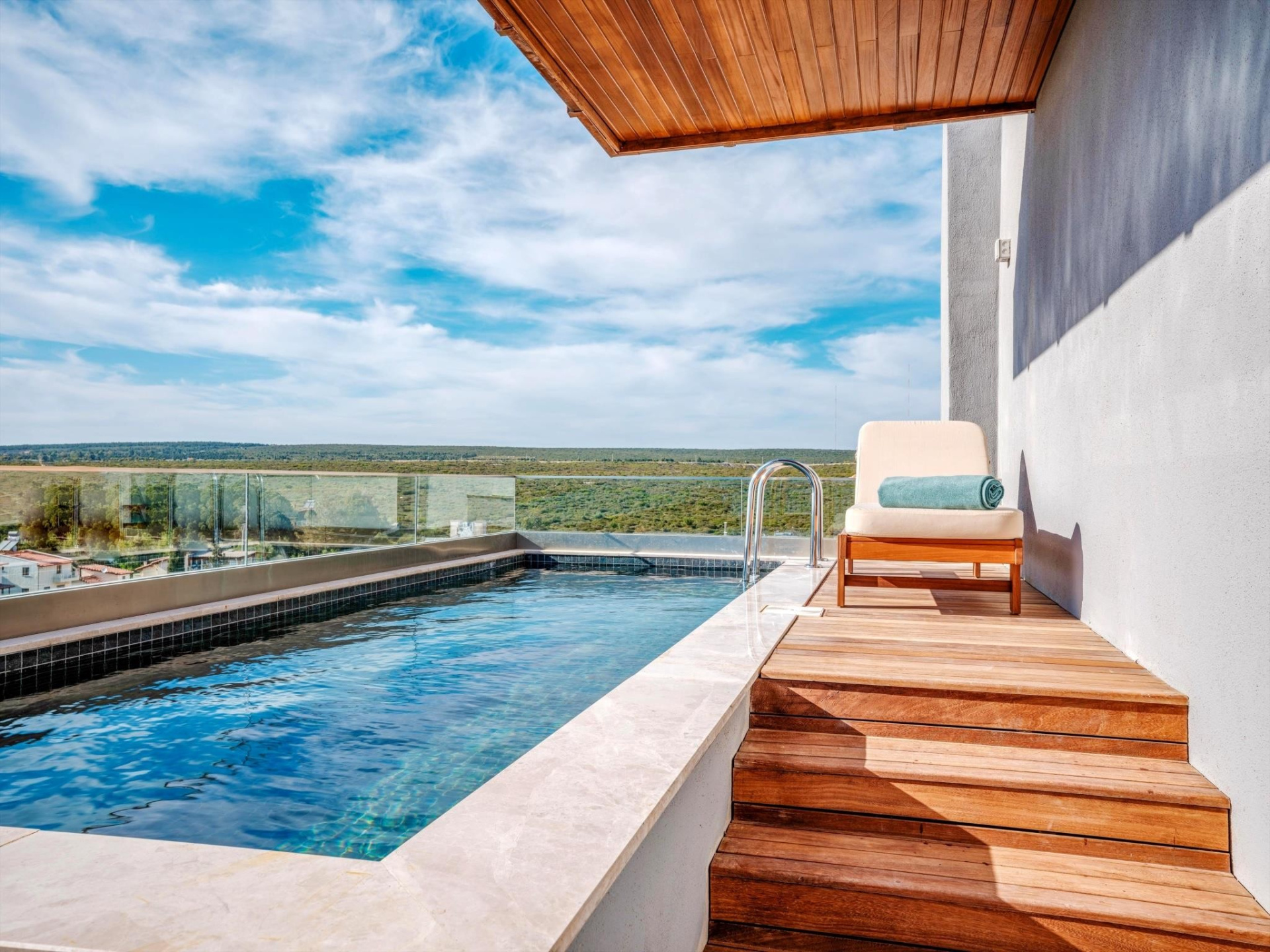 - Penthouse-szobák: saját medencével: a szálloda legfelső emeletén találhatók, tengerre nézők, luxus kiegészítőkkel (gin, vodka, whisky, pezsgő), saját medencével, balkon két napozóággyal, asztallal és székekkel