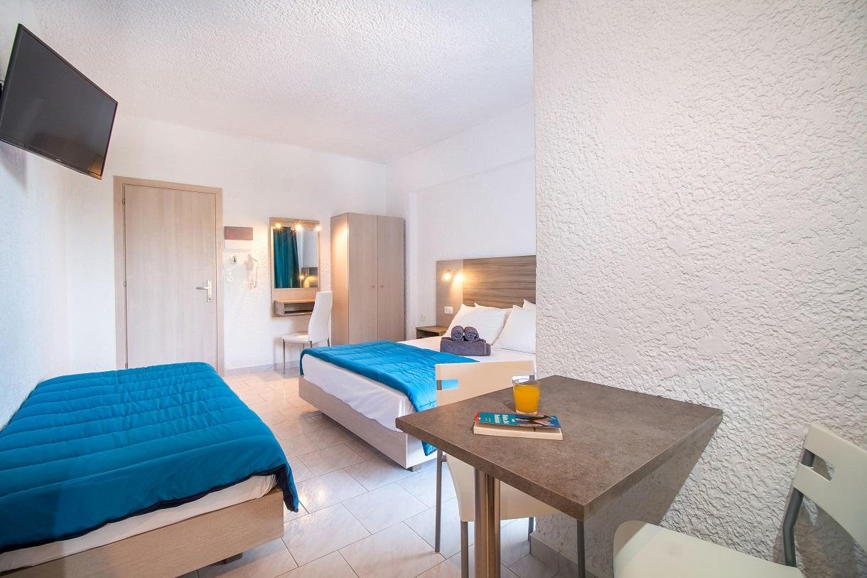 Szobák: Az Anika Studios szálloda 42 szobája van és az összes szobája rendelkezik, légkondicionálóval, széffel, konyhasarok alapvető főző felszereléssel. A szobák többségéhez erkély vagy terasz tartozik.