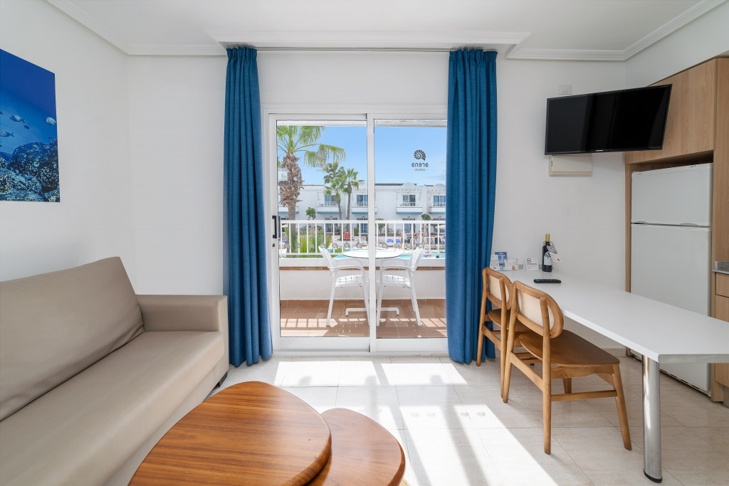 • 1 hálószobás apartman: Méret: 40 m2; Kilátás: kertre; Kiváló választás családi nyaralásra. Az apartmanok teljes felszereltséggel rendelkeznek. Mindegyikhez erkély vagy terasz tartozik, telefon, televízió, ébresztőszolgálat, étkező, légkondicionálás, fürdőszoba, ingyenes wifi, konyha, hűtőszekrény, széf (térítés ellenében) tartozik. A hálószobában 2 egyszemélyes ágy, a nappaliban kanapéágy várja. • Összenyitható apartmanok: Méret: 40 m2 / apartman; Kilátás: kertre; Nagy családok, vagy baráti társaságok számára összenyitható apartmanokat kínálunk. Az apartmanok teljes felszereltséggel rendelkeznek. Mindegyikhez erkély vagy terasz tartozik, telefon, televízió, ébresztőszolgálat, étkező, légkondicionálás, fürdőszoba, ingyenes wifi, konyha, hűtőszekrény, széf (térítés ellenében) tartozik. A hálószobában 2 egyszemélyes ágy, a nappaliban kanapéágy várja.