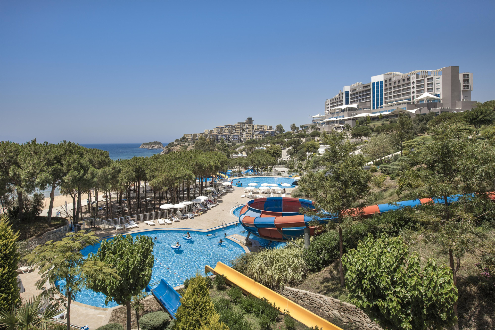 A nagy területen elhelyezkedő, családbarát szálloda a Claros-öböl felett helyezkedik el, a gyönyörű homokos tengerparton, egy domboldalban, ahonnan lenyűgöző kilátás nyílik a tengerre és a környékre. A főépületből és több kisebb blokkból álló létesítmény röbb medencével, egy víziparkkal, saját stranddal és spa-központtal várja a vendégeket, így kitűnő választás a szórakozásra és pihenésre egyaránt.
