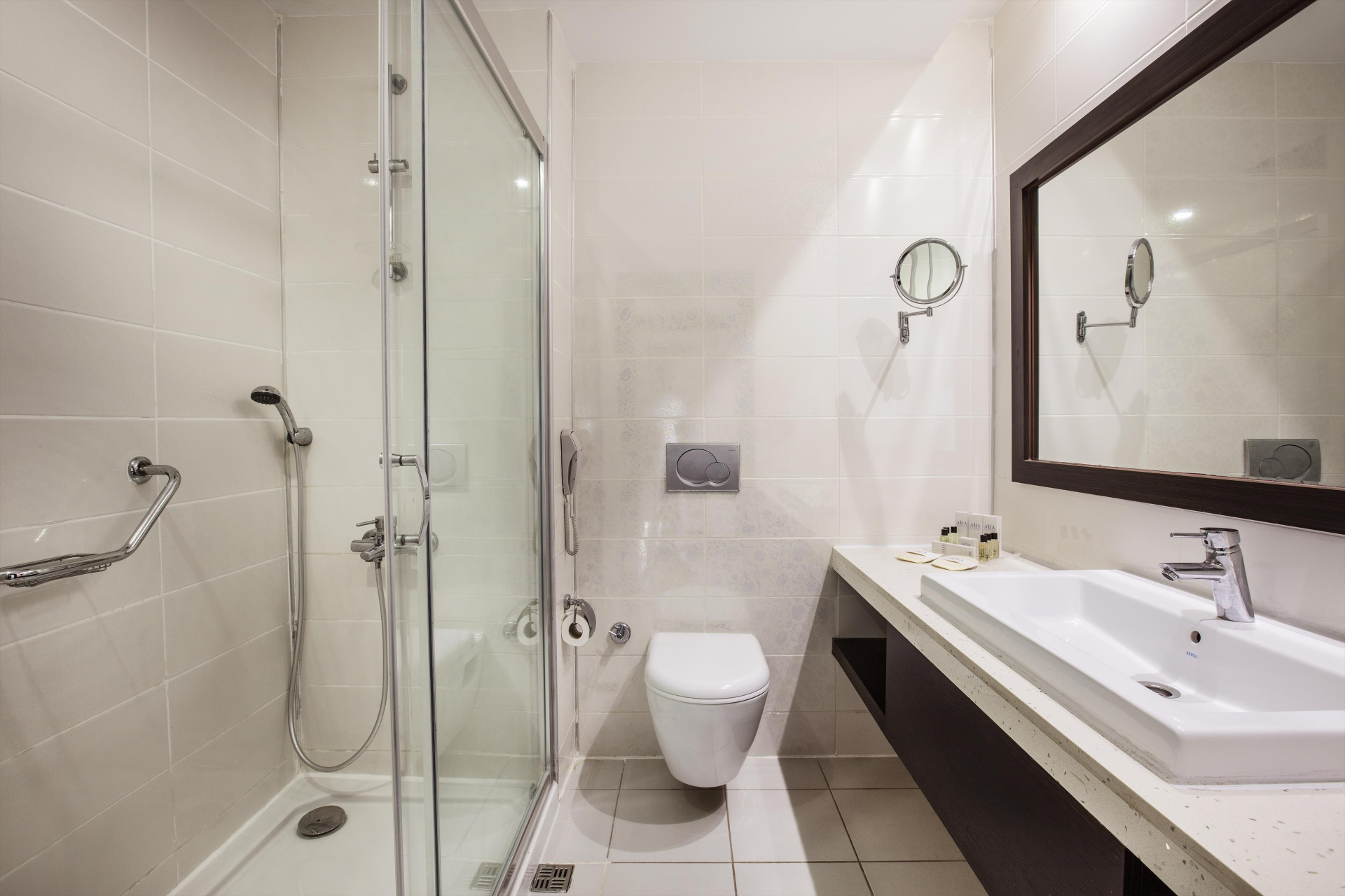 - fürdőszoba (fürdőkád vagy zuhanyozó, hajszárító, WC)