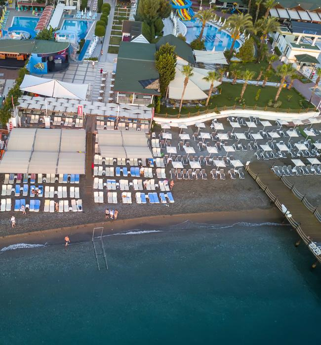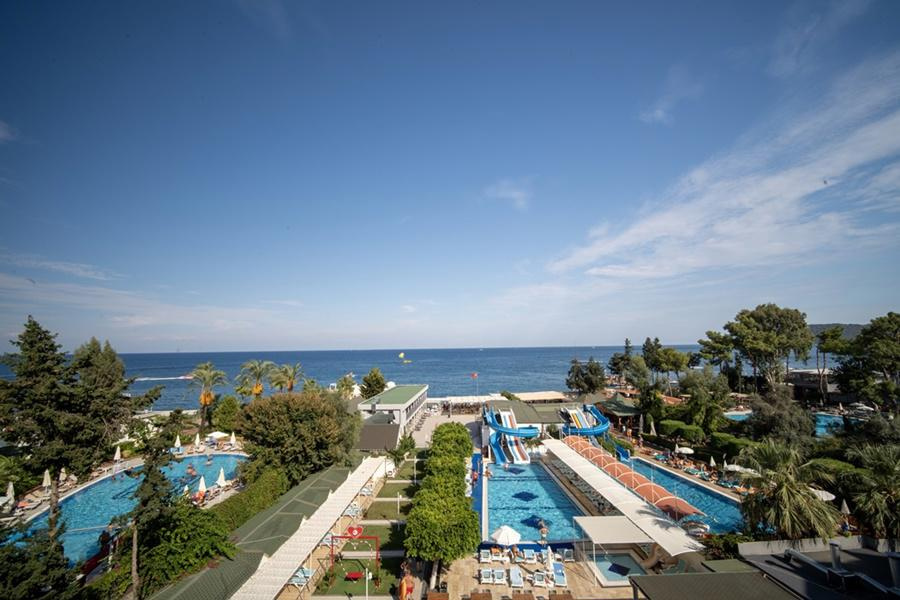ELHELYEZKEDÉS: Kemer központja kb. 1 km • Antalya belvárosa kb. 45 km • Antalya repülőtér kb. 55 km • a szálloda egy kb. 6.000 m²-es területen helyezkedik el • a közeli városok helyi busszal (dolmuš) vagy taxival könnyen megközelíthetők