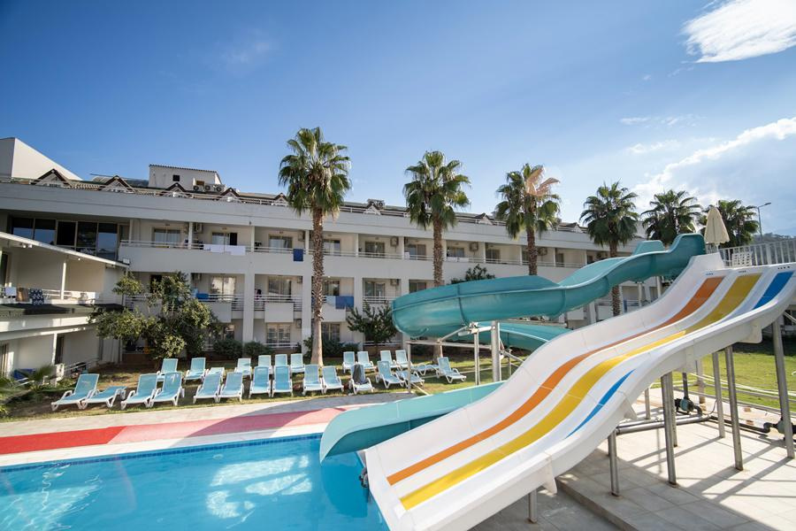SZOLGÁLTATÁSOK: kültéri medencék napernyőkkel és napozóágyakkal • vízicsúszdák • főétterem • bárok (lobby, medence, snack stb.) • sportprogramok • esti show-műsorok • élőzene (hetente többször) • diszkó • fitneszterem • aerobik • asztalitenisz • darts • strandröplabda • törökfürdő • szauna • wifi