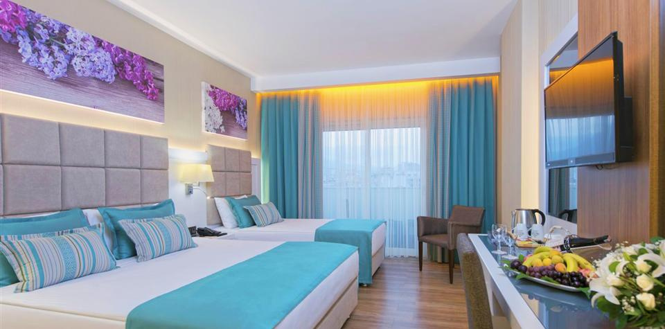 Fekvése: A 2016-ben épült, elsősorban európai vendégkörben kedvelt, modern stílusú szállodát csak a parti út választja el saját, homokos-aprókavicsos-sziklás strandszakaszától, ahonnan gyönyörű kilátás nyíliik a Taurus-hegység vonulataira vagy a 13. században épület alanyai várra, melyet mindenképpen érdemes felkeresnünk nyaralásunk során, hiszen innen lélegzetelállító kilátás nyílik a tenger végtelenjére. A szálloda 130 km-re fekszik az antalyai repülőtértől és 3 km-re Alanya központjától. Szolgáltatások: Felnőtt- és gyermek medence napozórésszel, külön medence 3 csúszdával, beltéri medence (csak a téli hónapokban), nappali és esti animációs programok, mini klub (4-12 éveseknek), játszótér, fitneszterem, aerobic, vízi torna, török fürdő, szauna, gőzfürdő, strandröplabda, vízi labda, billiárd, asztalitenisz, darts, wifi elérhetőség a szálloda egész területén. Térítés ellenében: Spa részleg szolgáltatásai, masszázsok, szépségszalon, fodrász, orvosi szolgálat, mosoda, gyermekfelügyelet, játékterem, vízi sportok a strandon, üzletek. A szálloda strandszakasza egy alagúton át közelíthető meg, strandbár, napozóágyak, napernyők és törölköző (csere kártya ellenében) ingyenesen vehetők igénybe. Elhelyezés: A 382 modern, letisztult és kényelmes szoba mindegyike rendelkezik központi légkondicionálóval, Sat TV-vel, telefonnal, széffel, vízforralóval, minibárral, hajszárítóval, zuhanyzós fürdőszobával és erkéllyel. A standard szobák max. 3 felnőtt + 1 gyermek részére foglalhatók. A családi tengerre néző szobák két, ajtóval elválasztható hálószobával rendelkeznek, max. 4 fő részére foglalhatók. A selection lakosztályok két, ajtóval elválasztható hálószobások, max. 5 felnőtt +1 gyermek részére foglalhatók. Ellátás: Ultra All Inclusive: Reggeli, ebéd és vacsora büférendszerben, késői reggeli, késői vacsora (23:00-07:00), napközbeni snackek, kávé/tea/ sütemények, gözleme, török lángos és fagylalt bizonyos időpontokban, helyi és néhány import alkoholos és alkoholmentes italok a nap 24 órájában, minibár naponta vízzel és üdítővel feltöltve. Térítés ellenében: Palackozott is import italok, frissen facsart narancslé a reggelihez, fogyasztás az a’la carte étteremben (török és olasz, előzetes asztalfoglalással).Egyéb:
