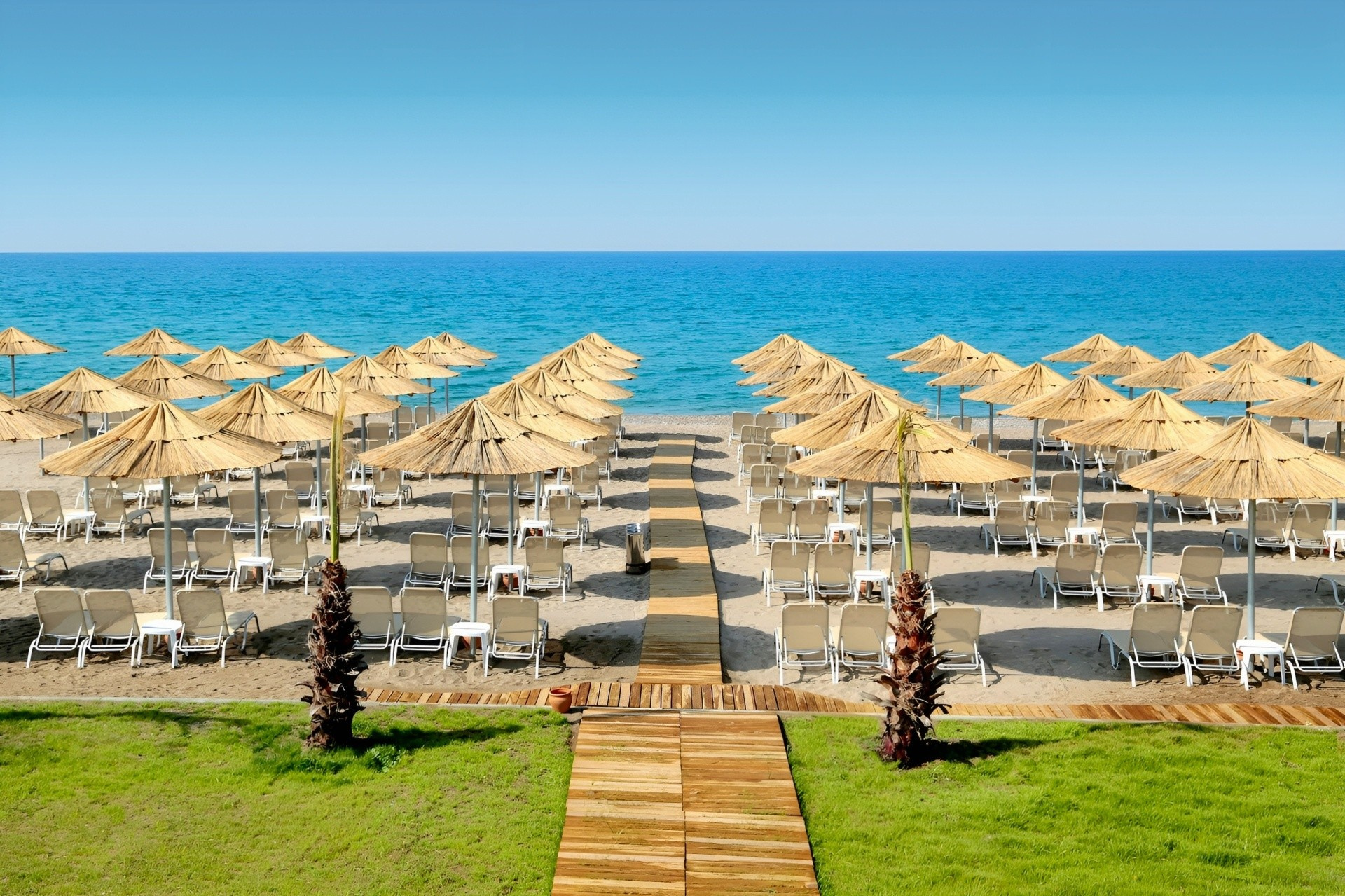 homokos tengerpart, néhol kavocsos (napágyak és napernyők ingyen)