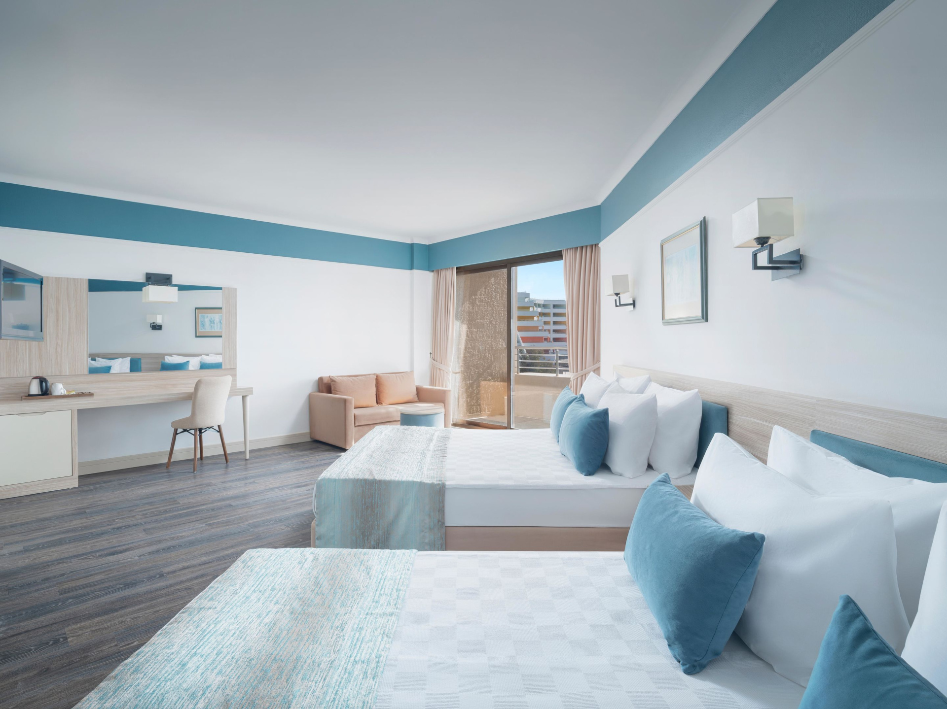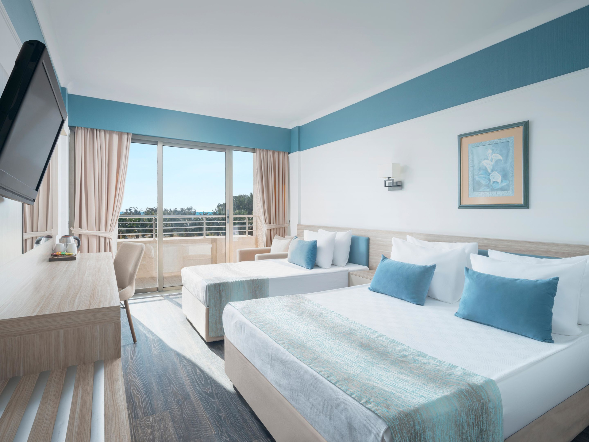 A szobákat légkondicionáló berendezéssel és fürdőszobával szerelték fel. A legtöbb szobában erkély gondoskodik a kilátásról. A legtöbb szoba tengerre néző kilátást biztosít. A vendégek pihentető alvásáról egy franciaágy gondoskodik. Ezen kívül van széf és minbár is. Az alapfelszereltséghez tartozik egy tea-/kávéfőző is. A felszereltséget telefon, TV-készülék és WiFi egészíti ki. A szobákban szobapapucs is található. A fürdőszobában zuhanyzó található. Rendelkezésre áll továbbá egy hajszárító.