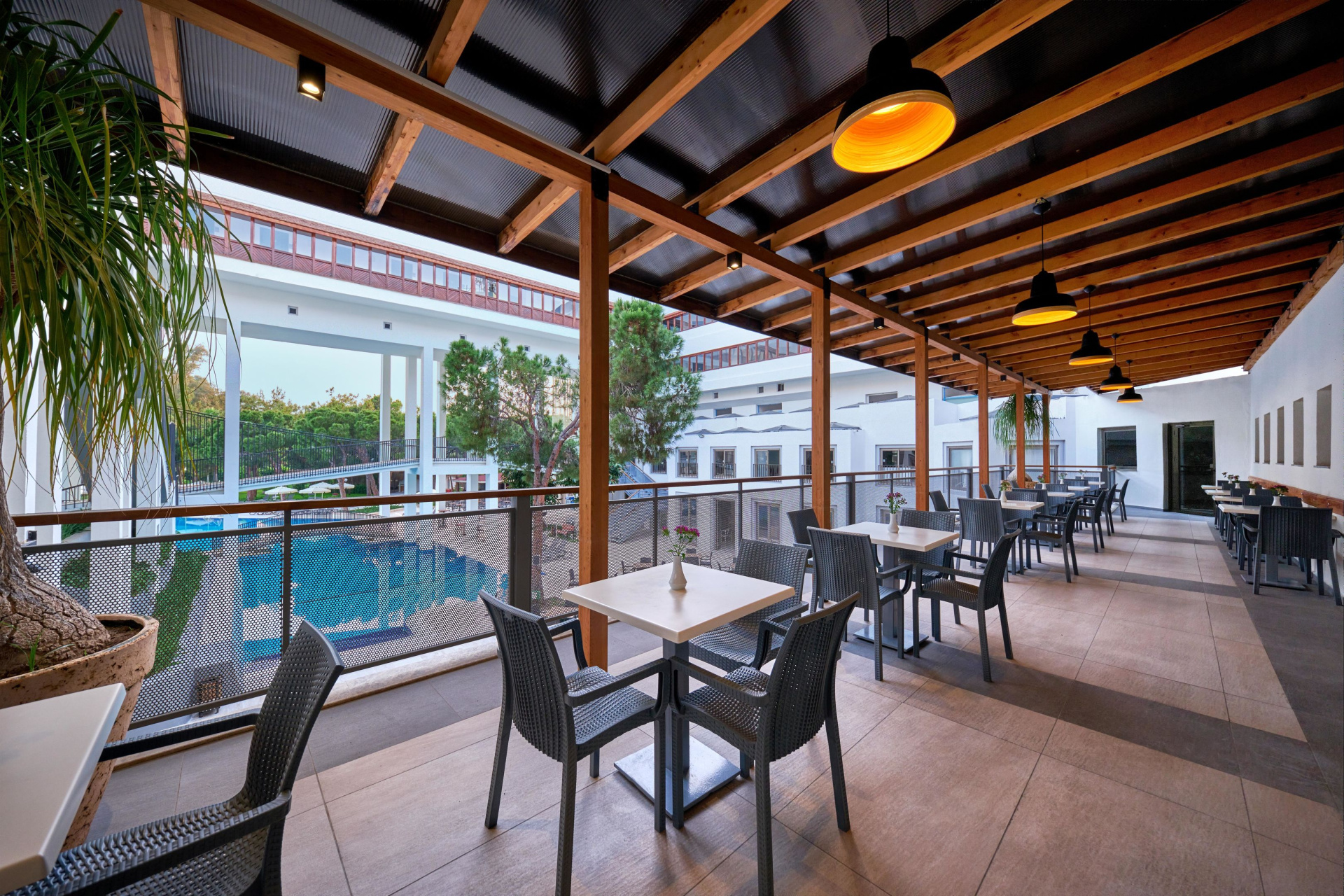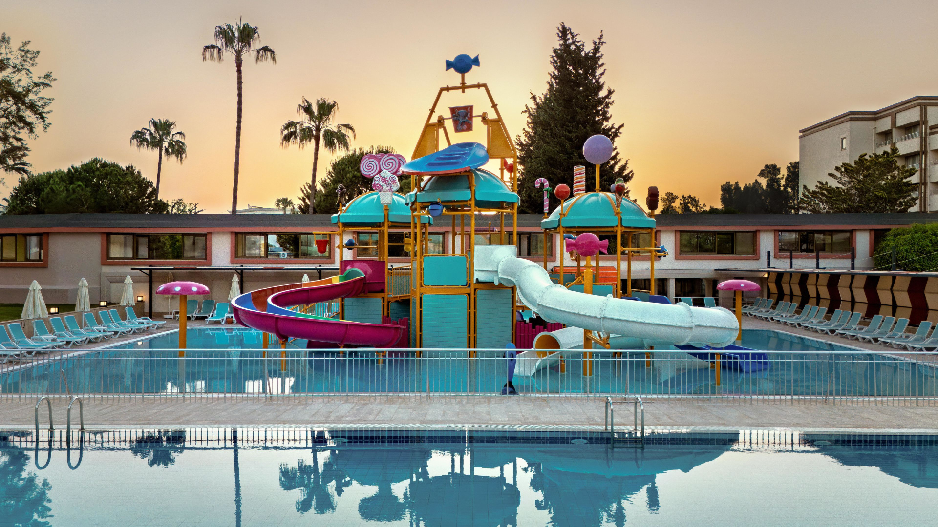 Forró napokon kettő medence - egy benti és egy kinti - gondoskodik a hűsítő élményről. A vízicsúszda kicsiknek és nagyoknak is élményt nyújt. A napimádókat kényelmes nyugágyak várják. Ezen kívül van egy medence- és snackbár is. A mozgásra vágyók az alábbi lehetőségek közül választhatnak: röplabda, kosárlabda és Paddle-Tennis. A szállás szabadidős kínálatához tartozik asztali tenisz, darts és aerobik. A komplexum wellnessrészlegének szolgáltatásai: gyógyfürdő, szauna, gőzfürdő és törökfürdő, valamint felár ellenében rendelkezésre áll egy szépségfarm, egy szépségszalon, masszázs kezelések és gyógykezelések. A hotel számos szórakozási lehetőséget kínál, szórakoztatóprogramokkal, élő zenével, miniklubbal és minidiszkóval várják a vendégeket. Copyright GIATA 2004 - 2026. Multilingual, powered by www.giata.com for client no. 703822