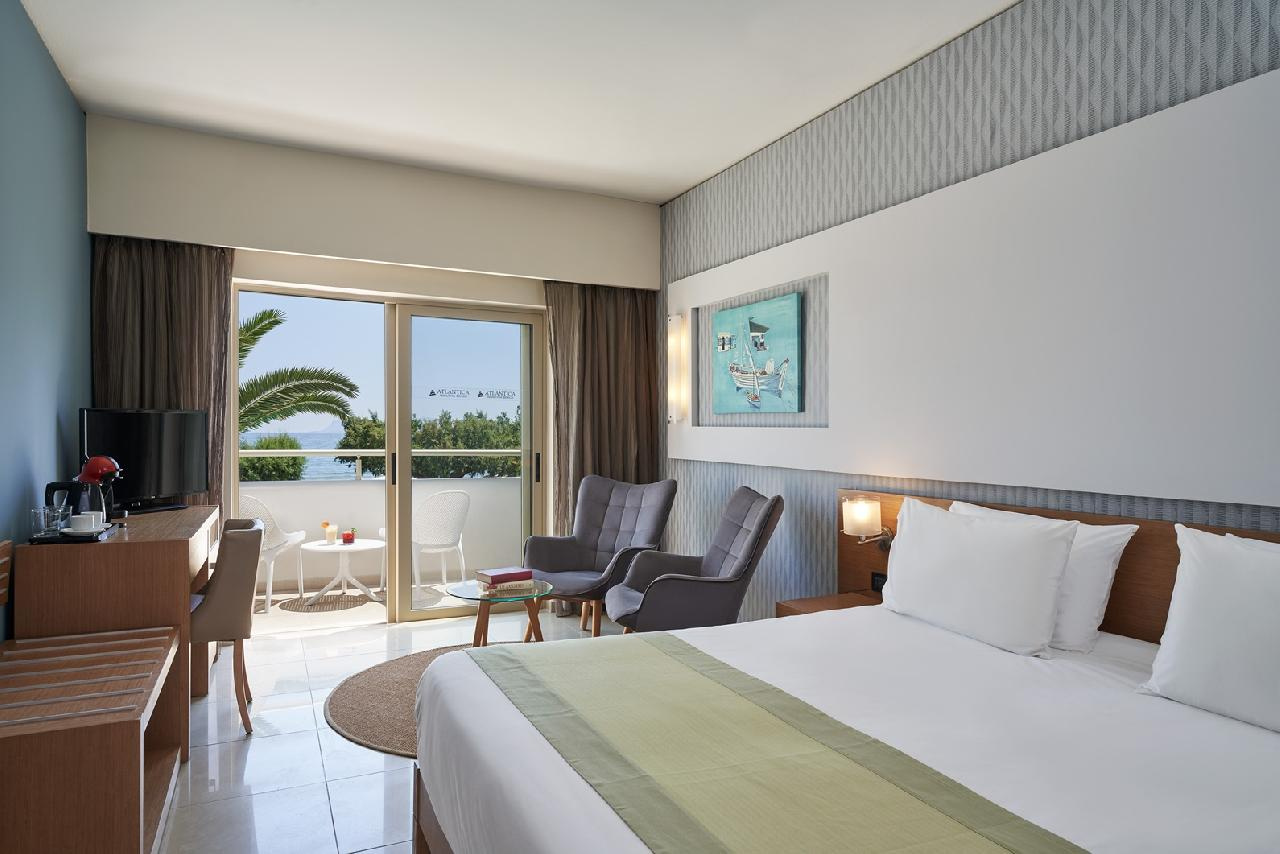 Szobák: A szálloda modern stílusban berendezett, világos és kényelmes szobákkal rendelkezik. Minden szobatípus légkondicionált, erkélyes vagy teraszos kialakítású.minden standard szoba szépen berendezett, egyhálószobás (19-24m2), fürdőszobás, légkondicionálóval, hajszárítóval, tv-vel, hűtővel, vízforralóval (kávé és teafőzési lehetőség) és telefonnal felszerelt. Szobaszéf a helyszínen térítés ellenében bérelhető (kb. 15 euró/hét.) A Szuperior szobák tágasabb kialakításúak, modernebb berendezéssel és igényesebb részletekkel rendelkeznek. A Deluxe szobák a szálloda legigényesebb szobatípusai közé tartoznak. Stílusos, prémium berendezéssel, tágas térrel és exkluzív hangulattal várják a vendégeket. A szobákhoz erkély tartozik, szárazföldre, kertre vagy tengerre néző kilátással.