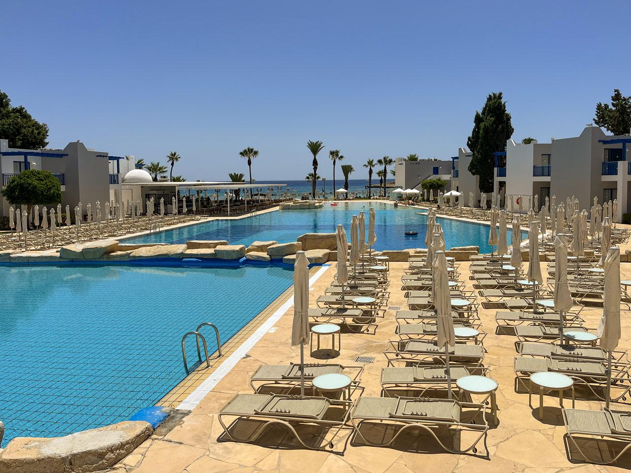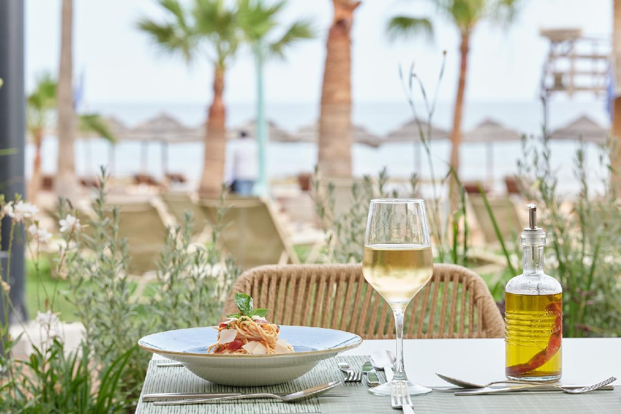 Étkezés: Félpanzió, büfé reggelivel és vacsorával. Friss gyümölcsök, pékáruk, hideg és meleg fogások, tojásételek, zöldségek, joghurtok és különféle italok – kávé, tea, friss gyümölcslevek – teszik teljessé a kínálatot. A vacsora is büfé formában zajlik, amely a nemzetközi és helyi ízek változatos kombinációját nyújtja. A vendégek helyi ciprusi specialitásokat is kóstolhatnak, valamint élvezhetik a tematikus estek változatos fogásait. Az all inclusive ellátás magában foglalja a napi három főétkezést – reggelit, ebédet és vacsorát –, amelyek büfé formában érhetők el, nemzetközi és helyi ízek változatos kombinációját kínálja. Az étkezések mellé különféle italokat kínálnak, beleértve a helyi alkoholos italokat, borokat, valamint az alkoholmentes frissítőket is, amelyeket a korlátlanul fogyaszthatnak a vendégek 10-24 óra között. A vendégek emellett több bár közül választhatnak, ahol széles italválasztékot kínálnak. Az italválaszték a szálloda által meghatározott az itallapokon ALL jelöléssel található. Mind a reggeli, ebéd és vacsorák során kiemelt figyelmet fordítanak az ételek minőségére, frissességére, és igyekeznek minden ételallergiát vagy diétás igényt is kielégíteni. Napközben snackek és könnyű hideg és meleg ételek is elérhetők, valamint jégkrémek, kávé és sütemények a délutáni órákban.