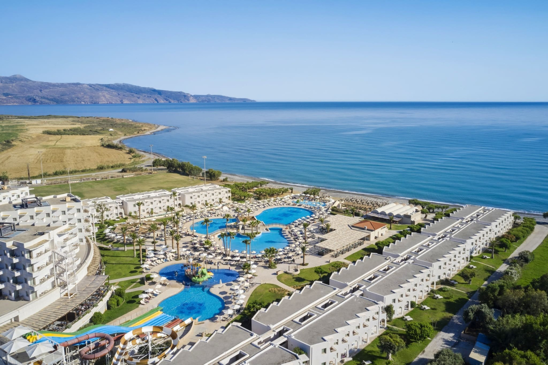A szálloda a Maleme strandon található és saját víziparkkal és gyógyfürdővel rendelkezik. Platanias üdülőhely közelében fekszik, csak egy rövid autóútra Chania városától. Számos szolgáltatást kínál felnőtteknek és gyerekeknek egyaránt.